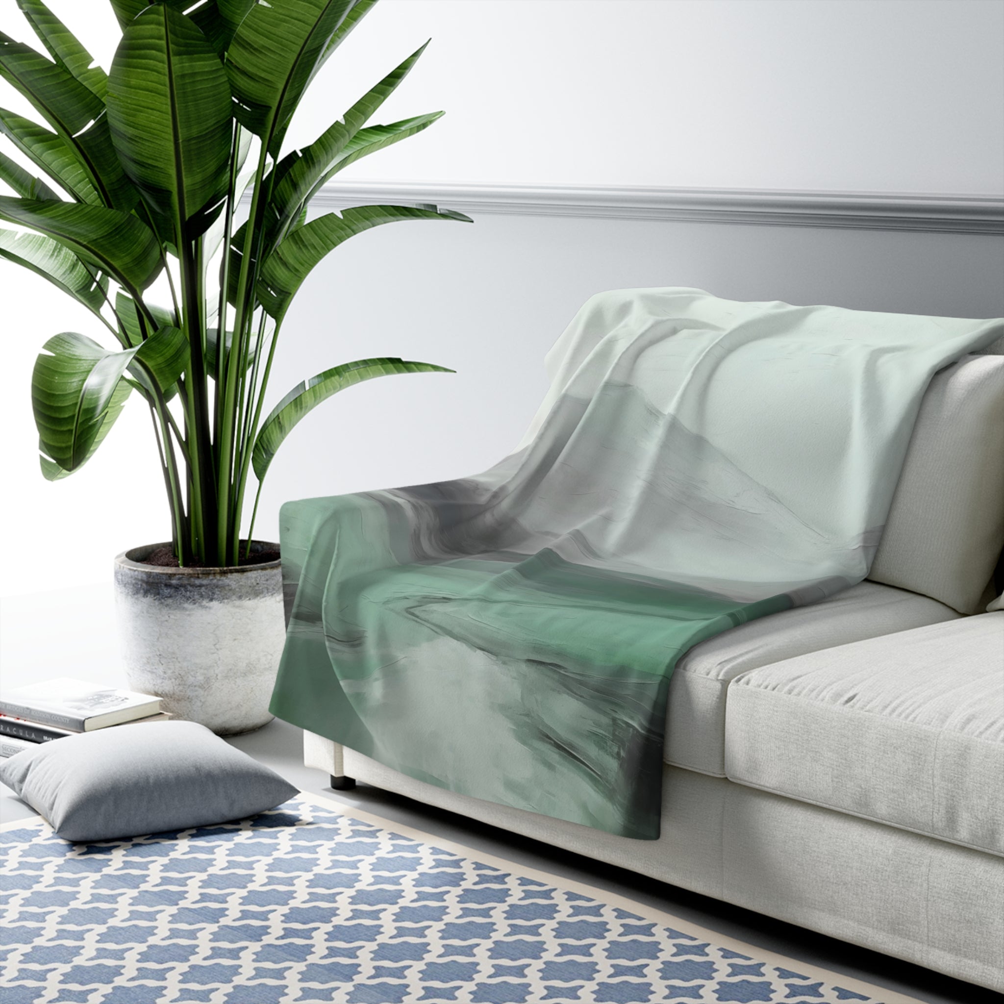 Abstract Large Area Rug | Mint Blue White Green Watercolor Rug