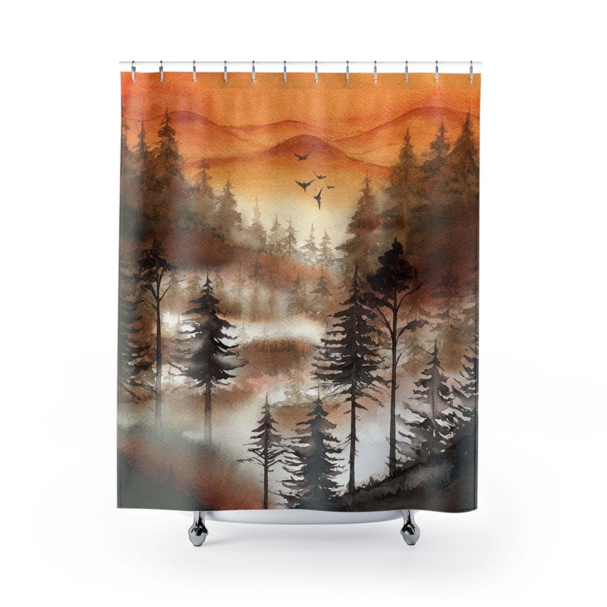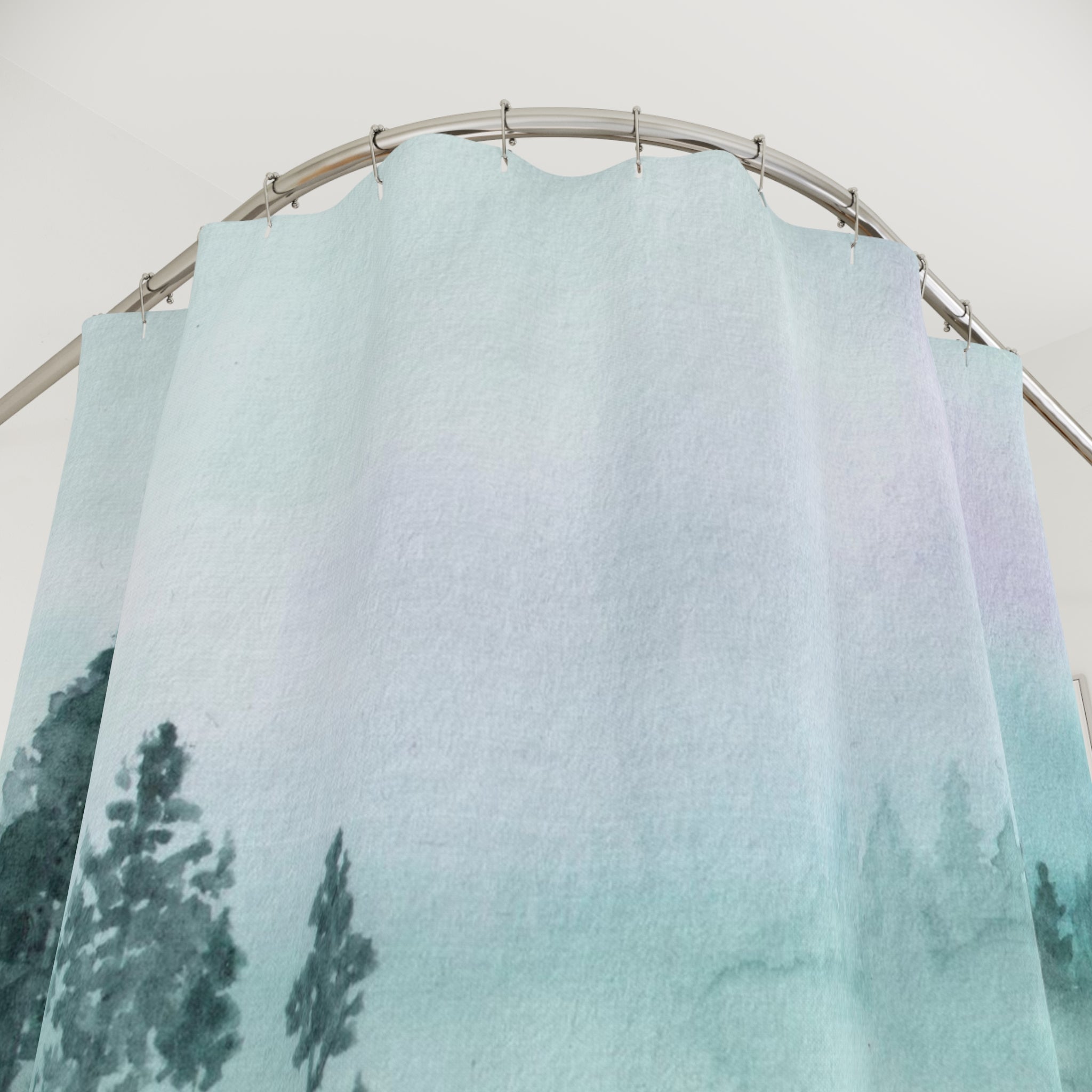 Boho Shower Curtain | Sage Green Landscape Fabric Curtain