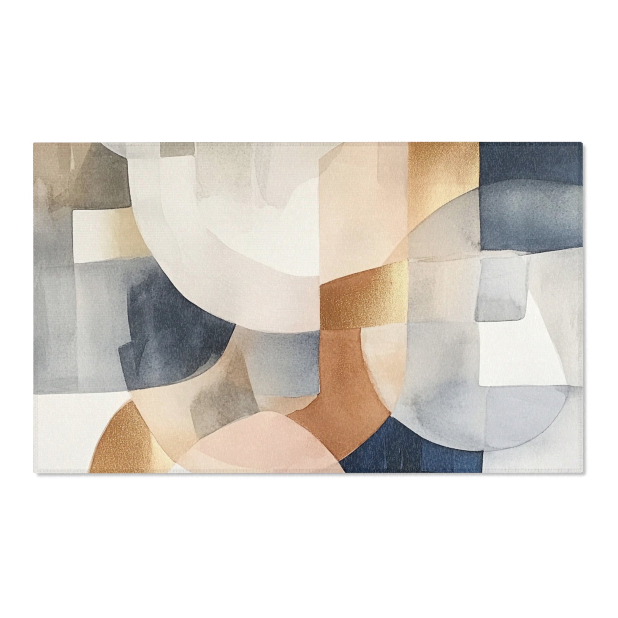 Abstract Large Area Rug | Modern Navy Blue Beige Watercolor Rug