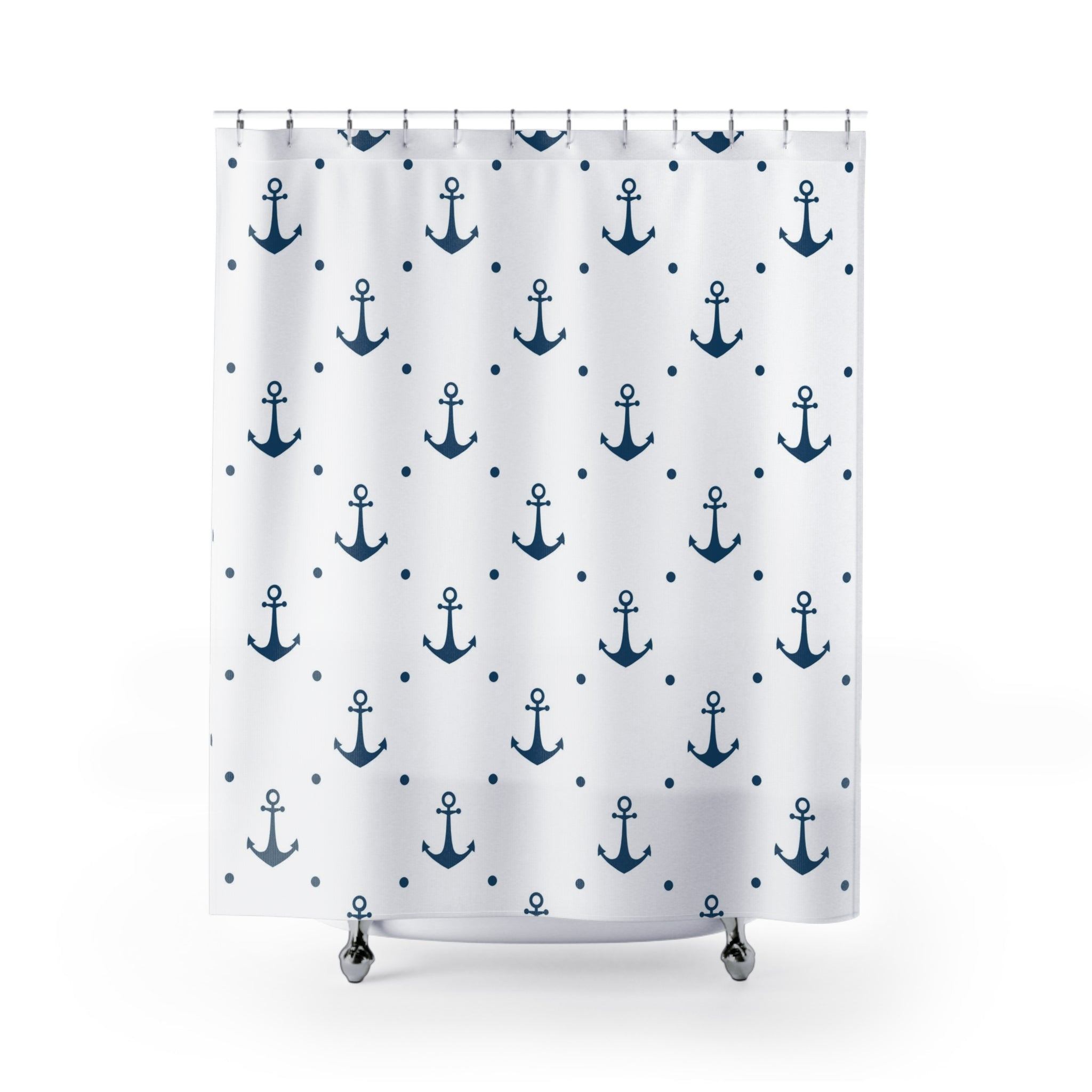 Ship Shower Curtain | Blue White Boat Anchor Curtain
