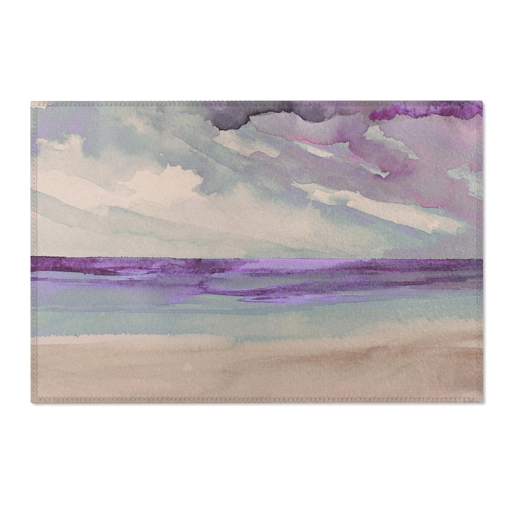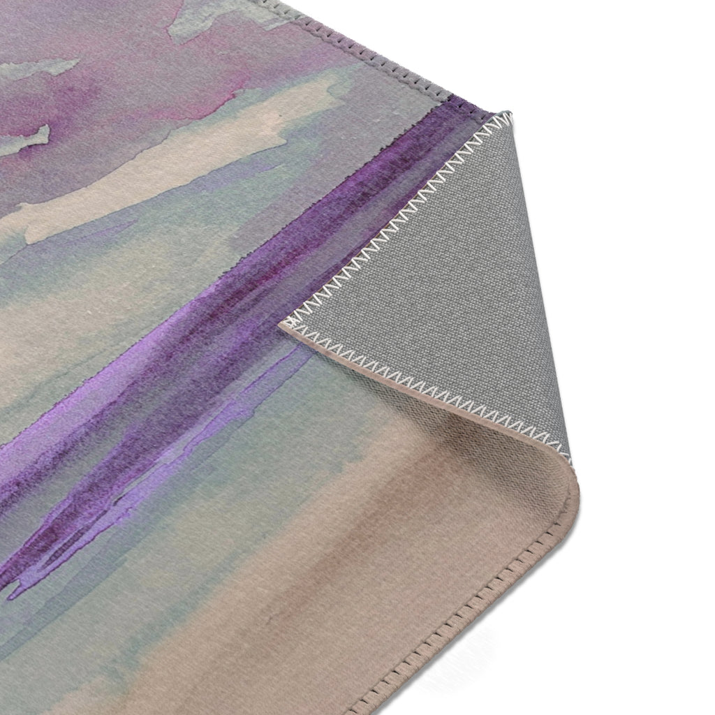 An abstract area rug in blush pink and grey watercolor design, adding a touch of artistic flair to any room. Perfect for those looking to enhance their home decor with a modern and stylish touch. Ideal for individuals who appreciate unique and vibrant home accessories. Relevant for home decorations, housewarming gifts, and room makeovers.