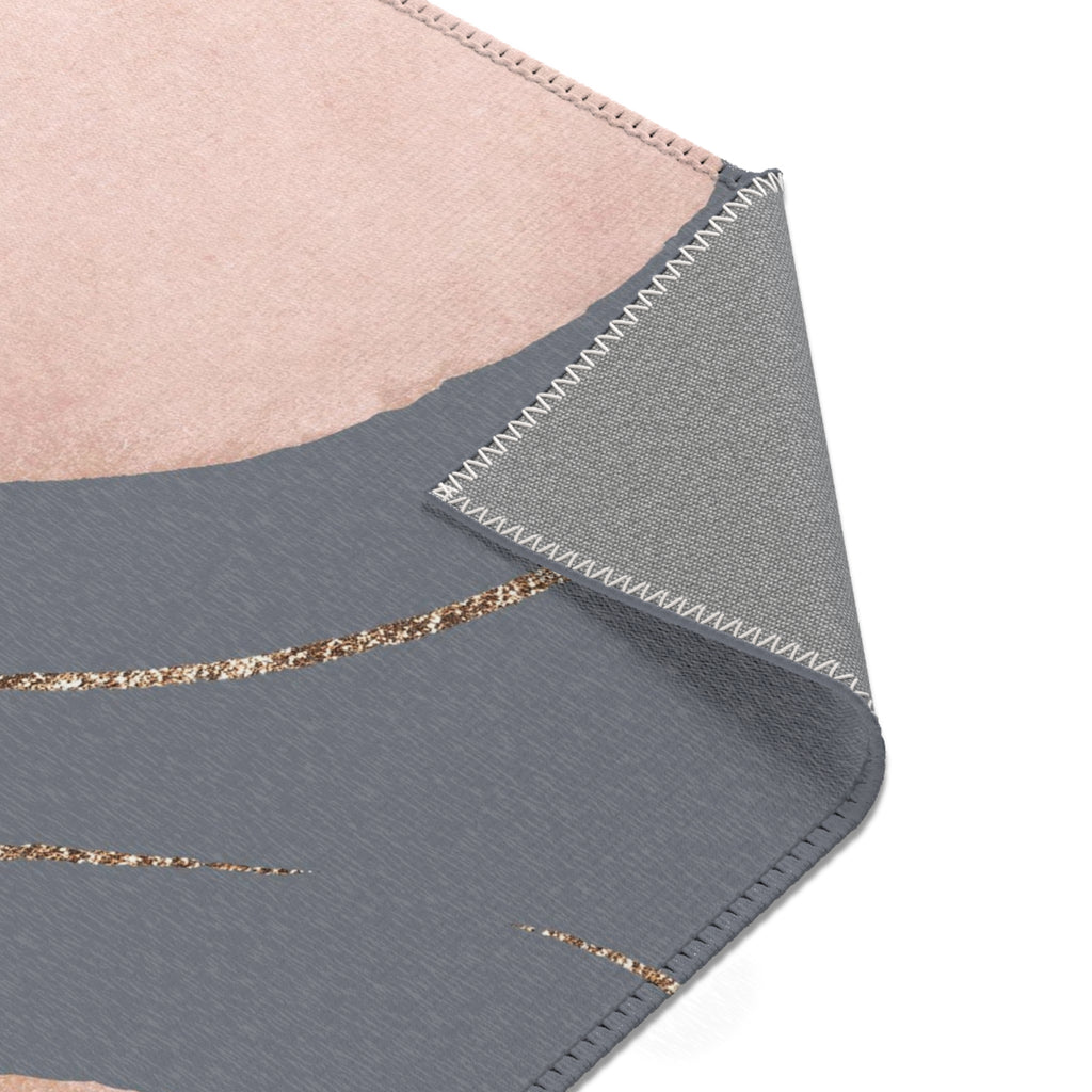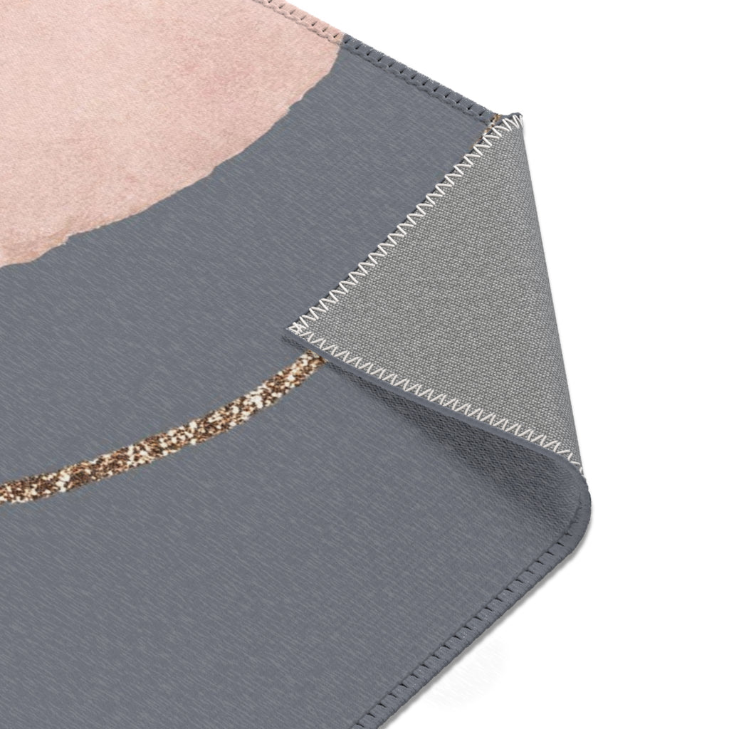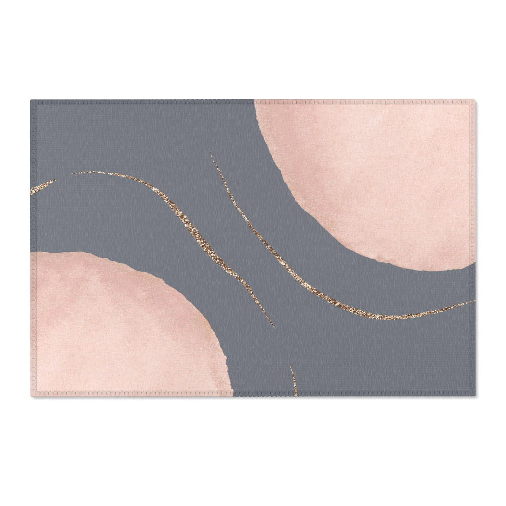 An abstract area rug in blush pink and grey watercolor design, adding a touch of artistic flair to any room. Perfect for those looking to enhance their home decor with a modern and stylish touch. Ideal for individuals who appreciate unique and vibrant home accessories. Relevant for home decorations, housewarming gifts, and room makeovers.