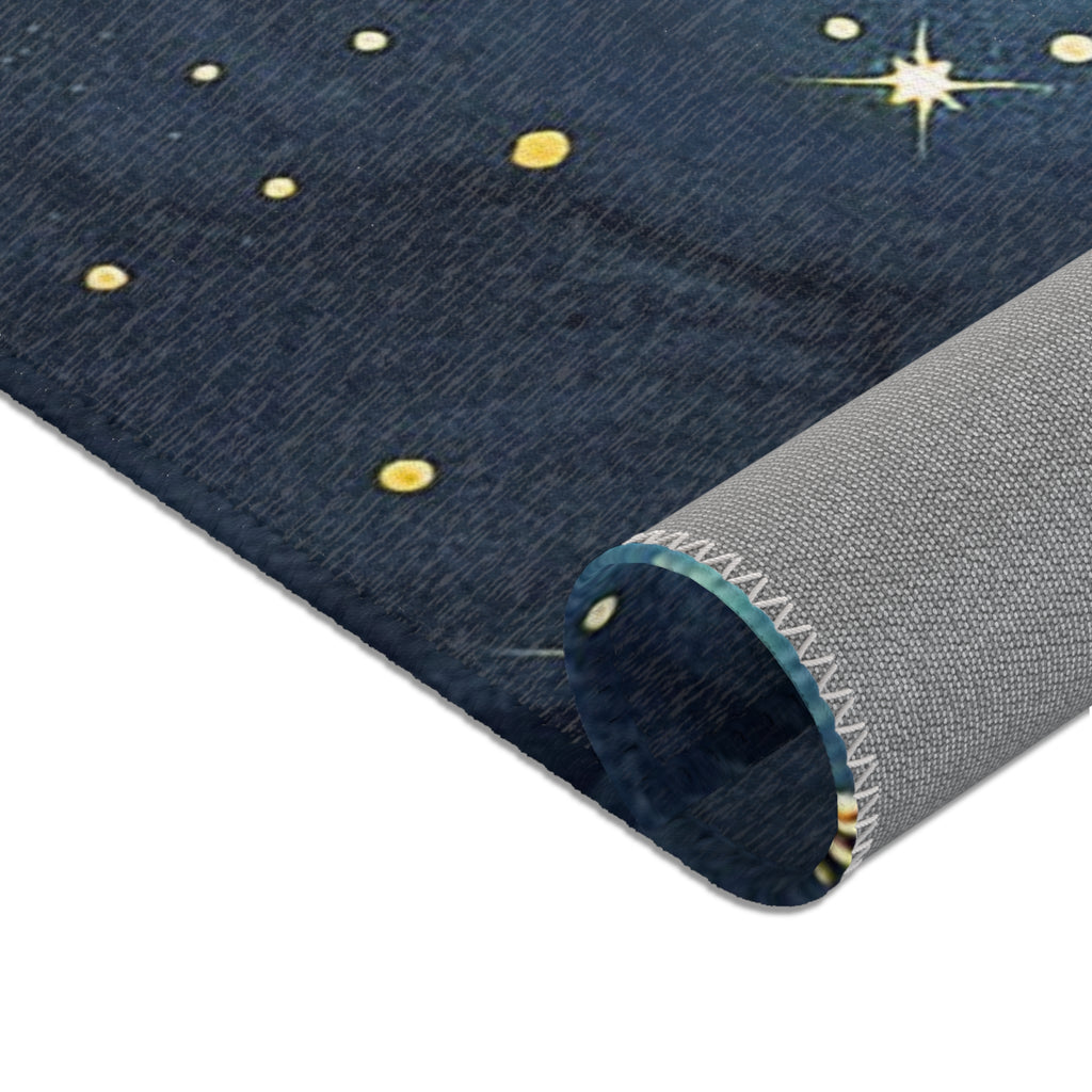 Abstract Area Rug | Celestial Sky Navy Blue Watercolor