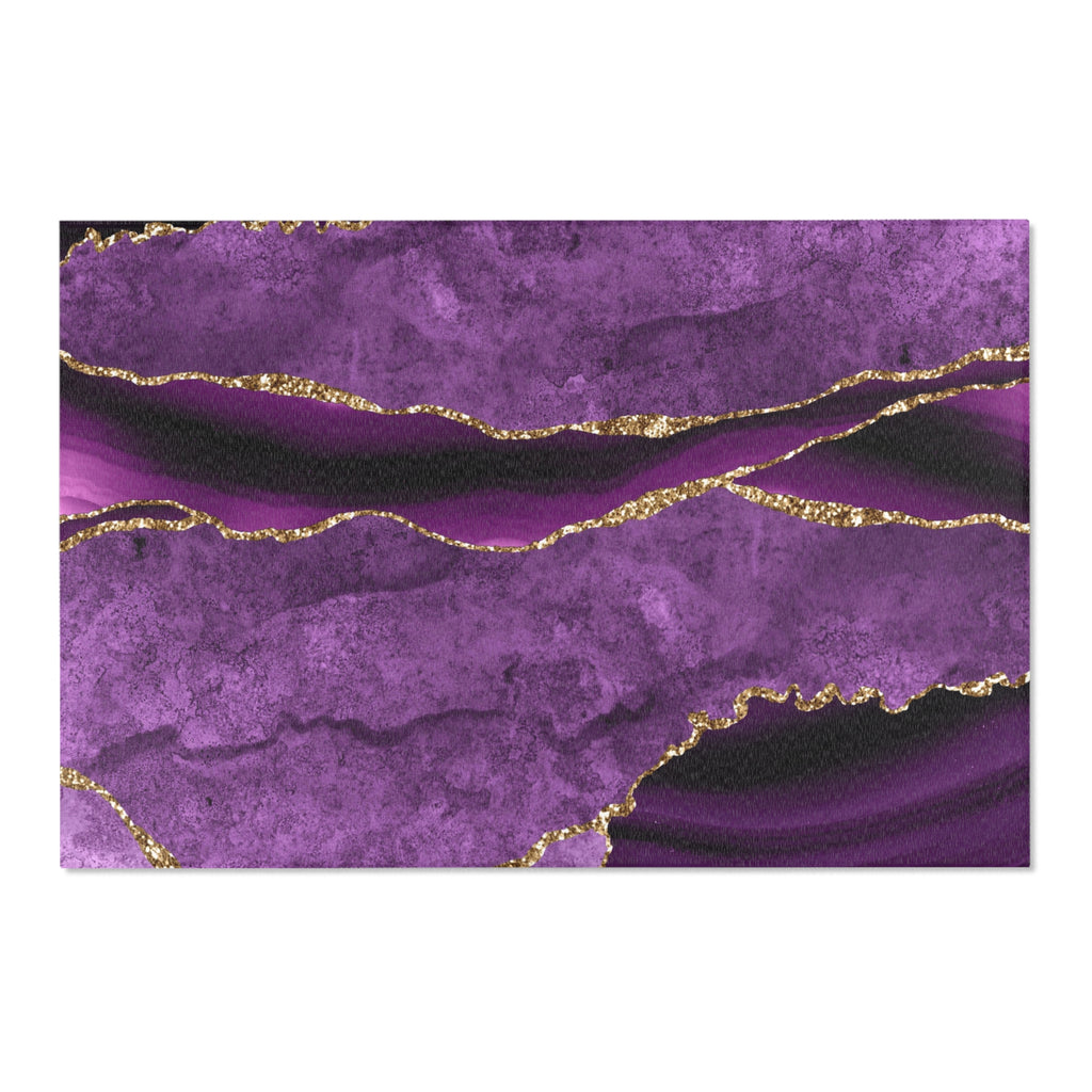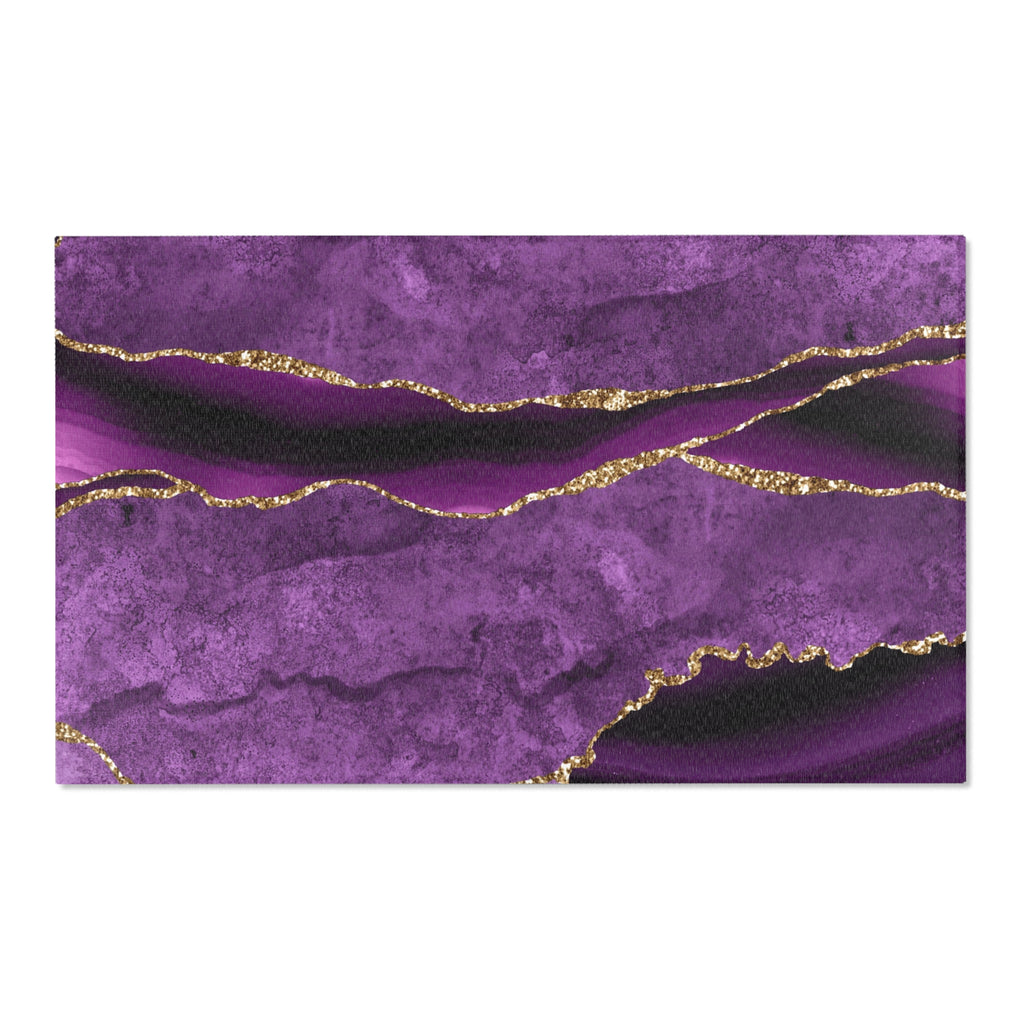 Abstract Area Rug | Retro Marble Print, Lilac Violet Purple, Muted Gold