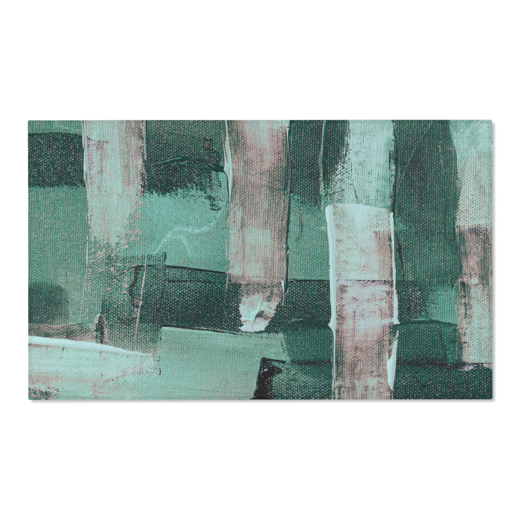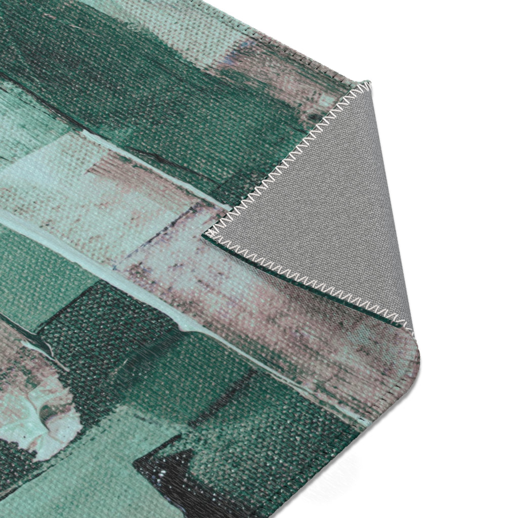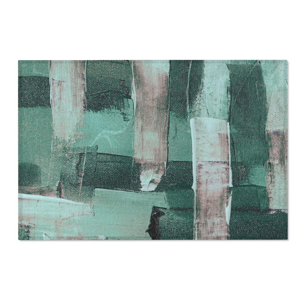An abstract area rug in blush pink and grey watercolor design, adding a touch of artistic flair to any room. Perfect for those looking to enhance their home decor with a modern and stylish touch. Ideal for individuals who appreciate unique and vibrant home accessories. Relevant for home decorations, housewarming gifts, and room makeovers.