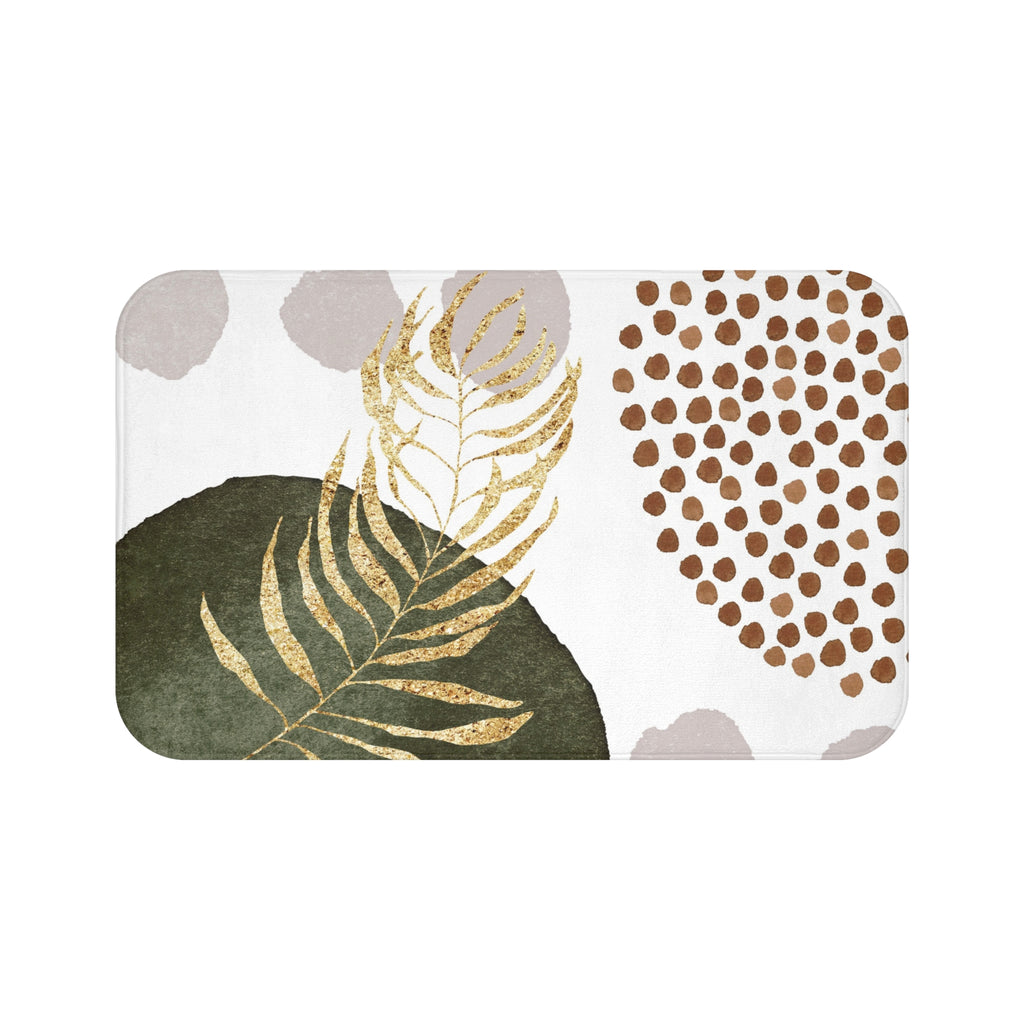 Abstract Bath Mat | White Green Beige Kitchen Mat
