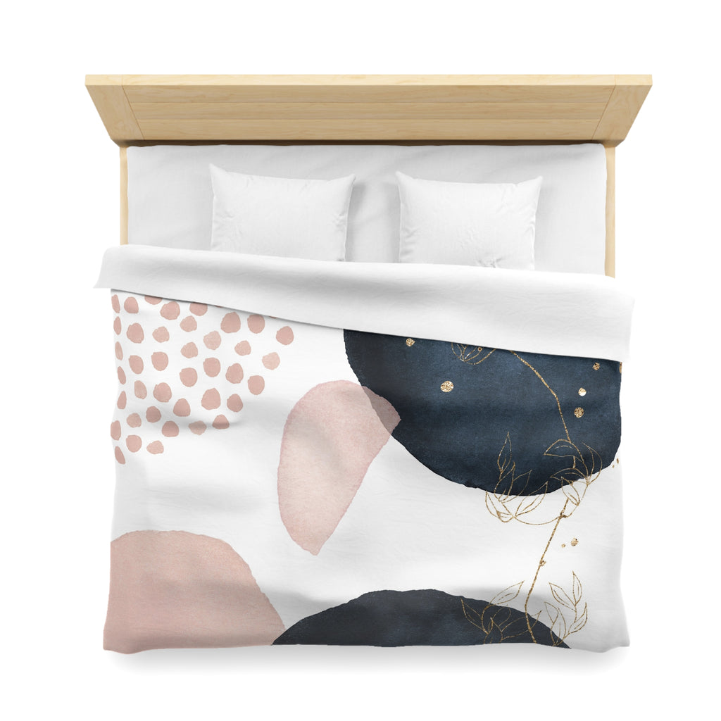 Abstract Duvet Cover | White Blush Pink, Navy Blue Blanket | Bedroom Decor