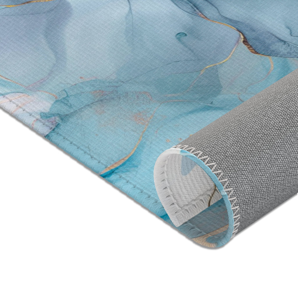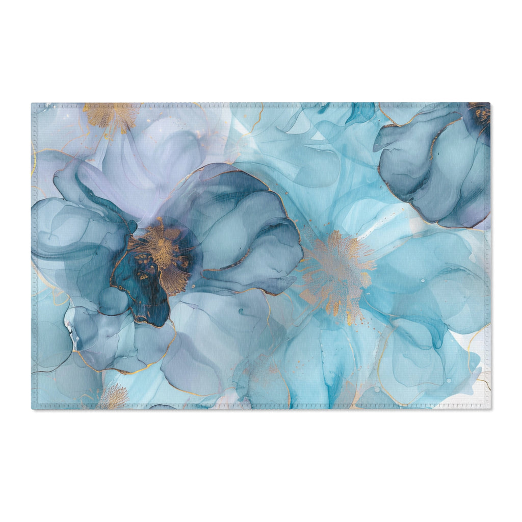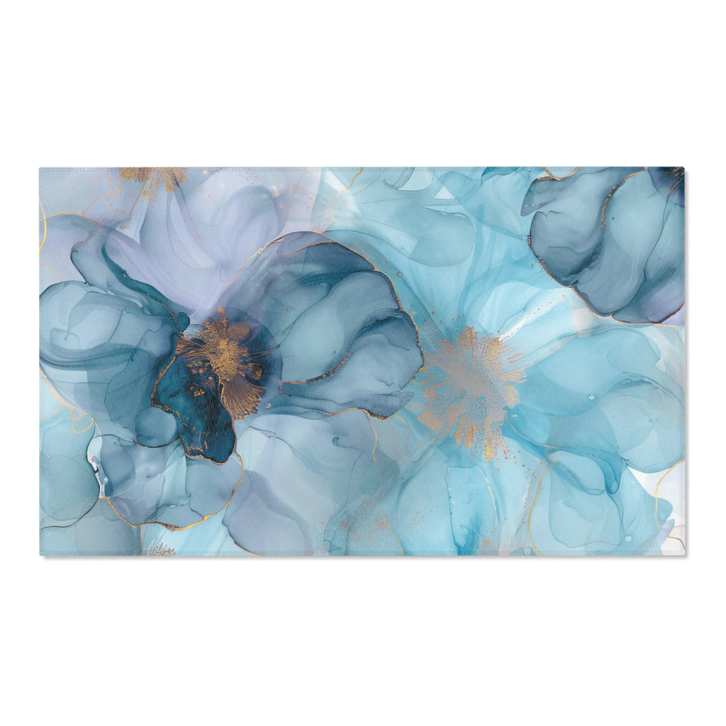 Abstract Floral Area Rug | Aqua, Navy Blue Beige Watercolor