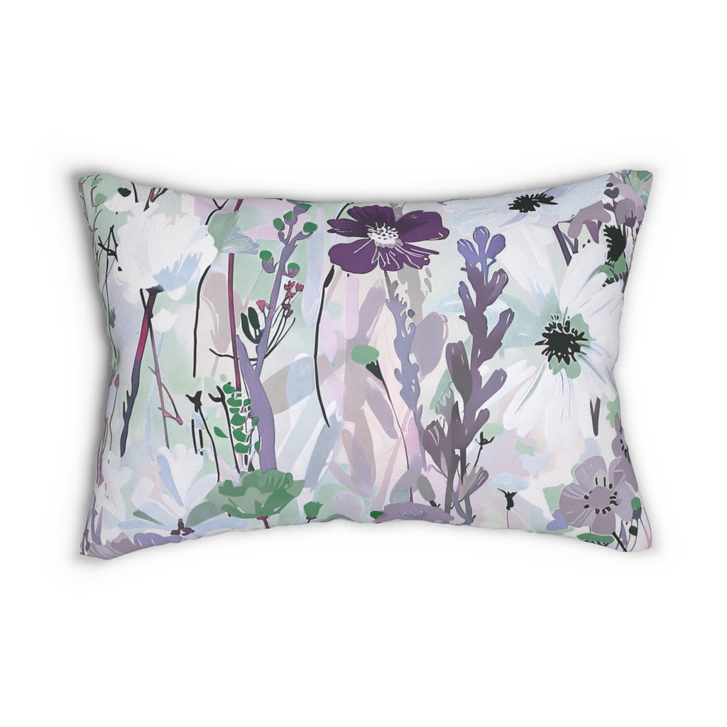 Abstract Floral Lumbar Pillow | Sage Green Blue Purple White