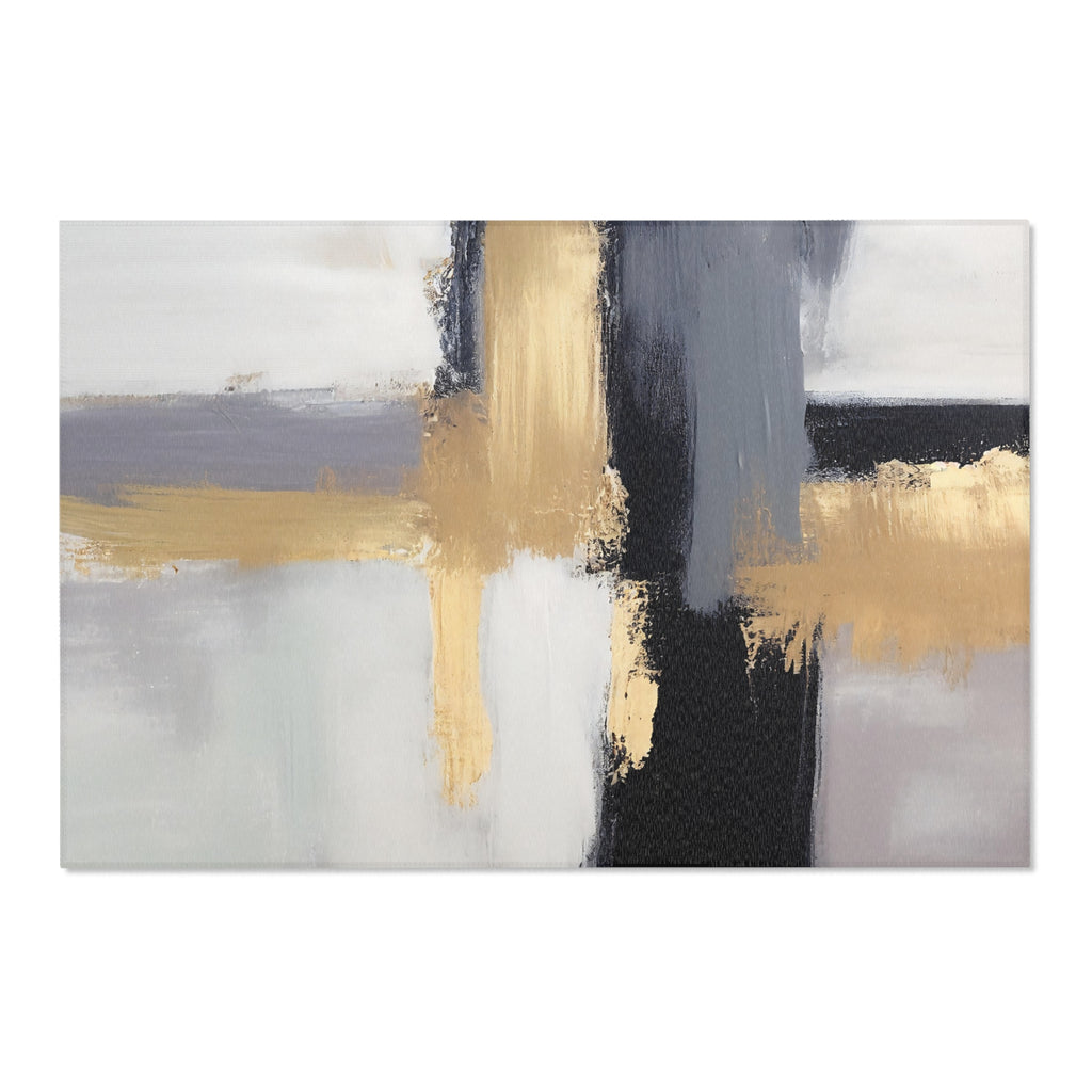Abstract Large Area Rug | Modern Black Muted Gold Grey Watercolor Rug