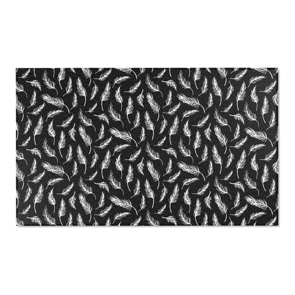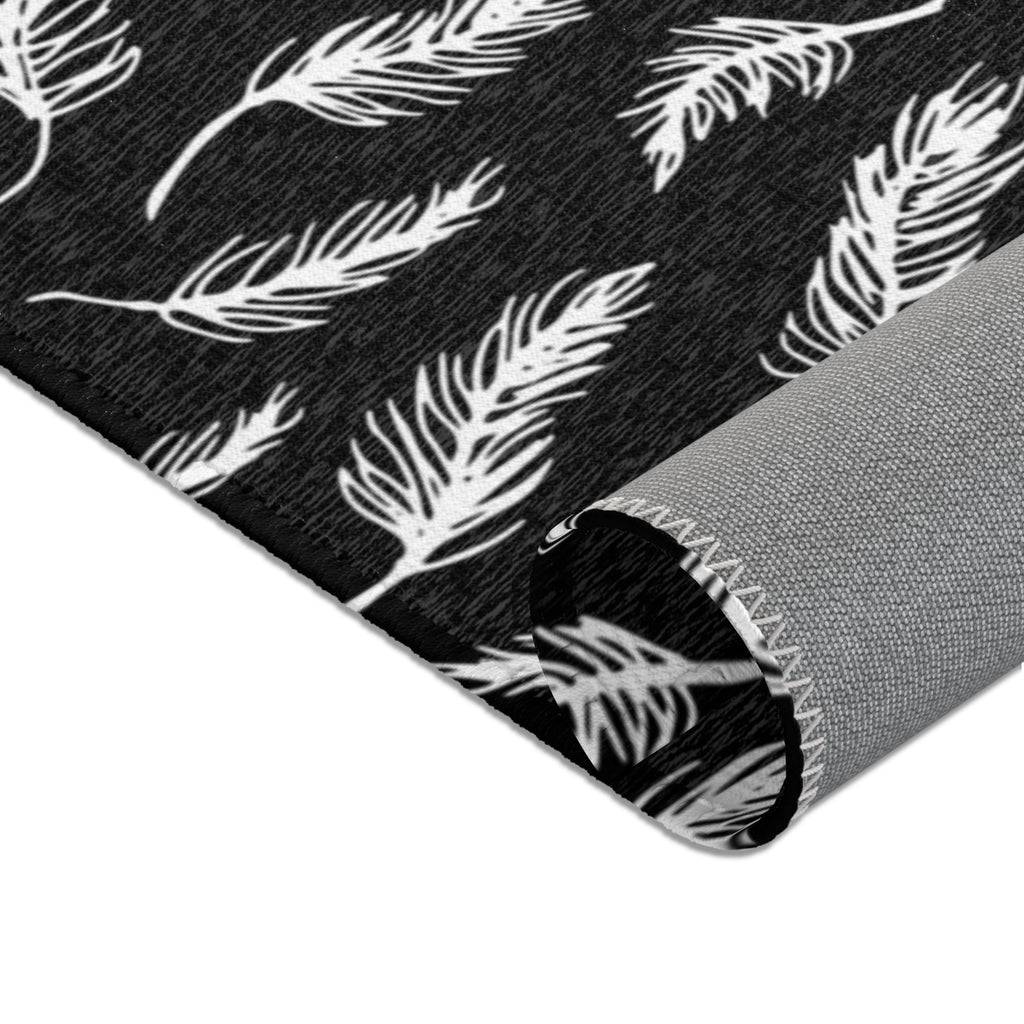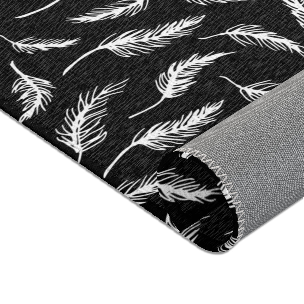 Abstract LeavesbArea Rug | Modern Black White Floral