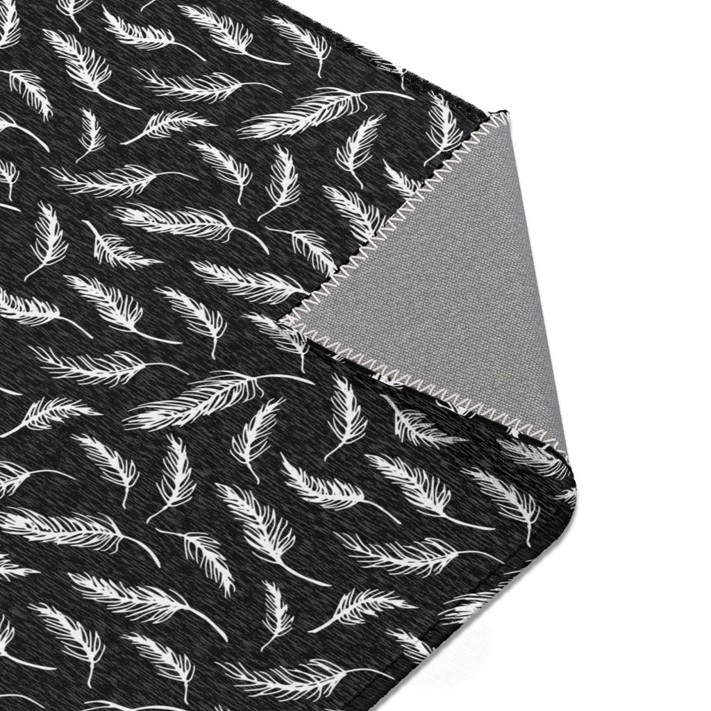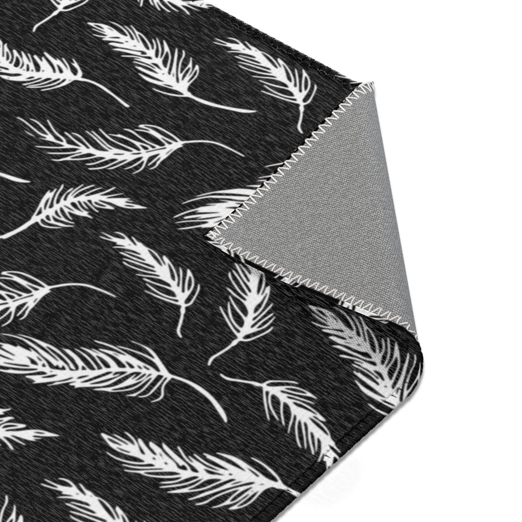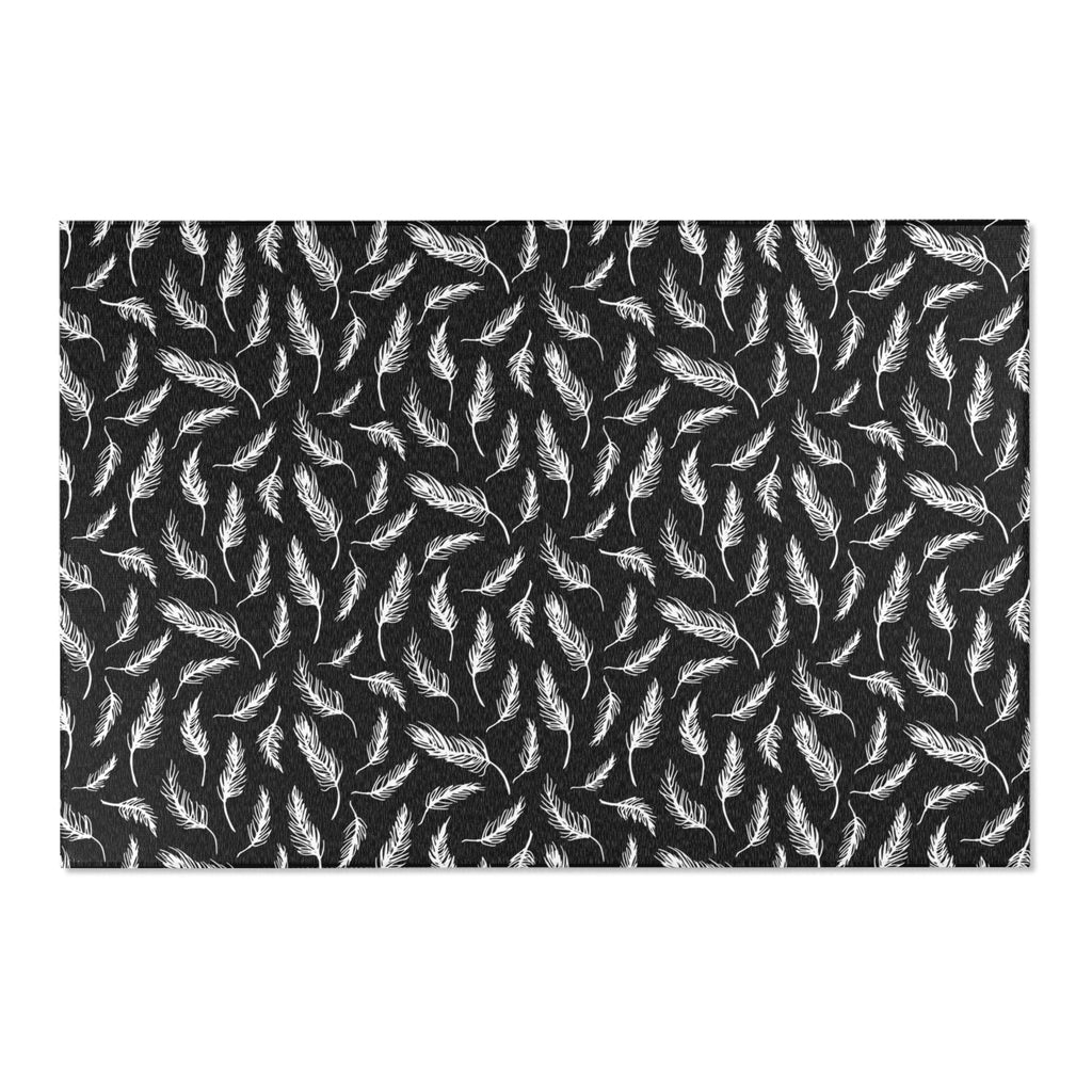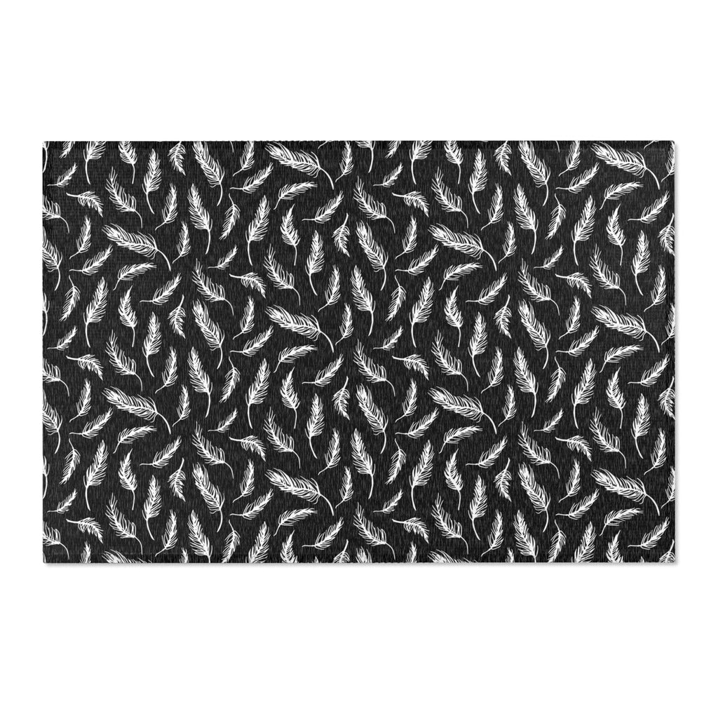 Abstract LeavesbArea Rug | Modern Black White Floral