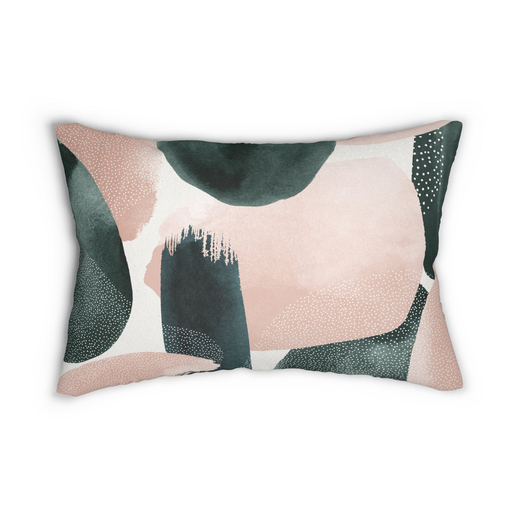 Abstract Lumbar Pillow | Blush Pink White Green Watercolor