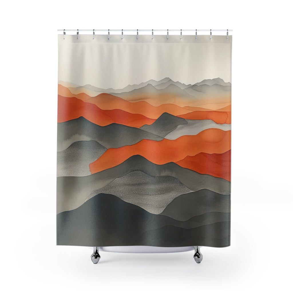 Abstract Mountain Boho Shower Curtain | Grey Orange