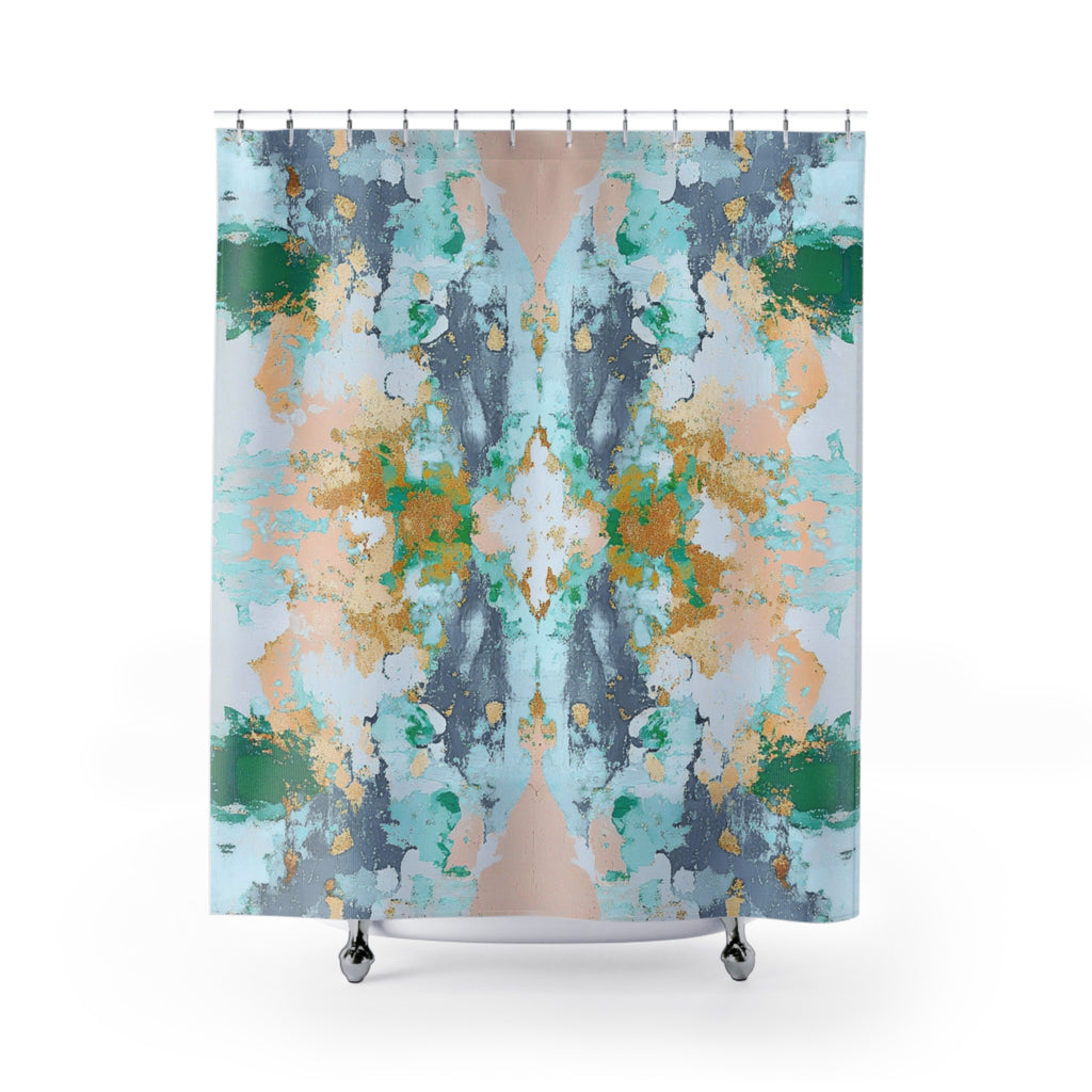 Abstract Shower Curtain | Aesthetic Mirrored Art, Blue Blush Green