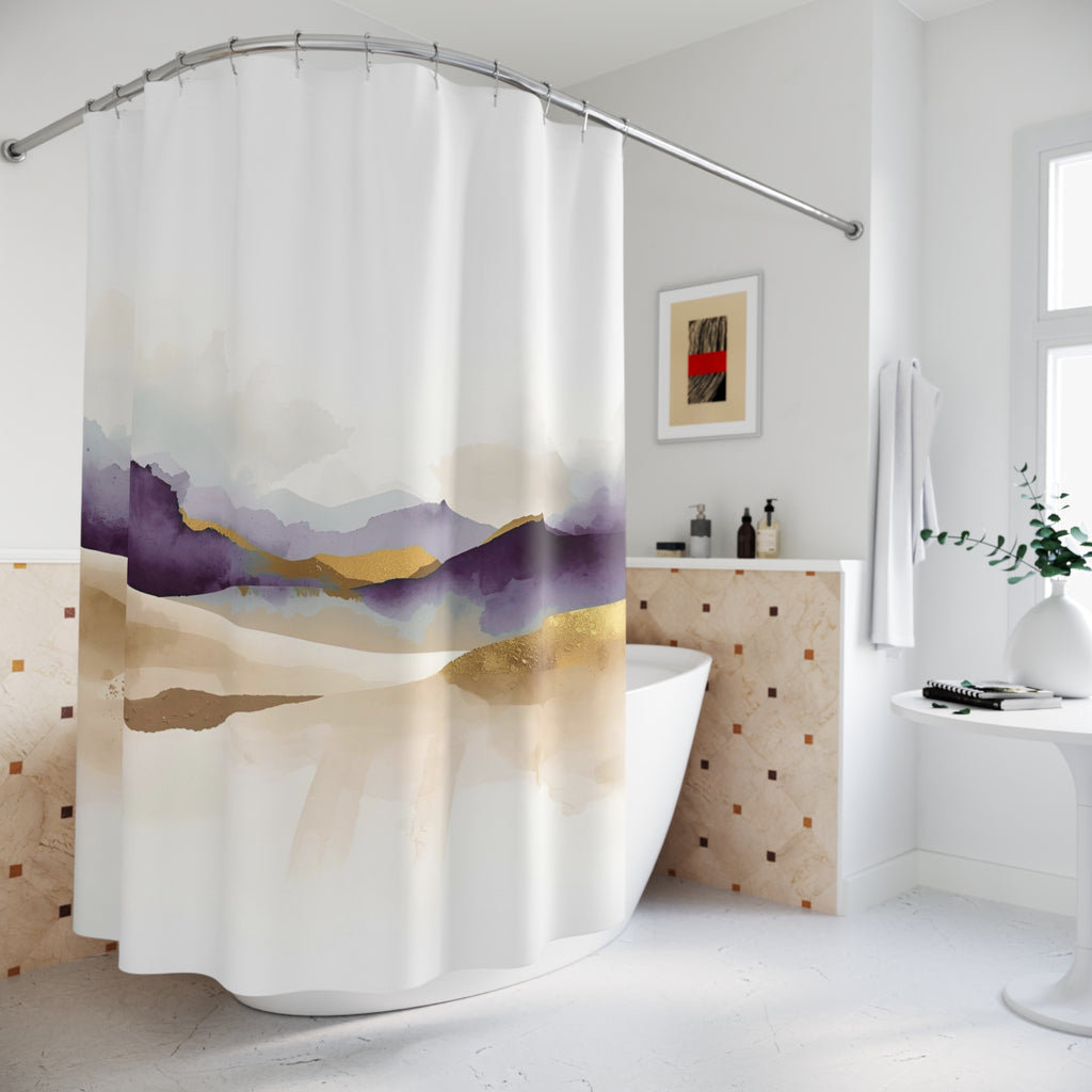Abstract Shower Curtain | Artsy White Beige Purple Watercolor