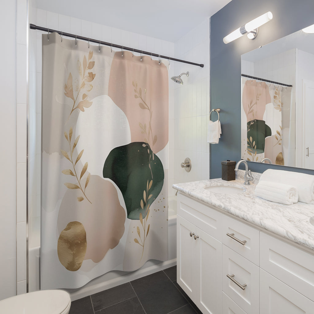Abstract Shower Curtain | Blush Beige Pink, Muted Gold Sage Green