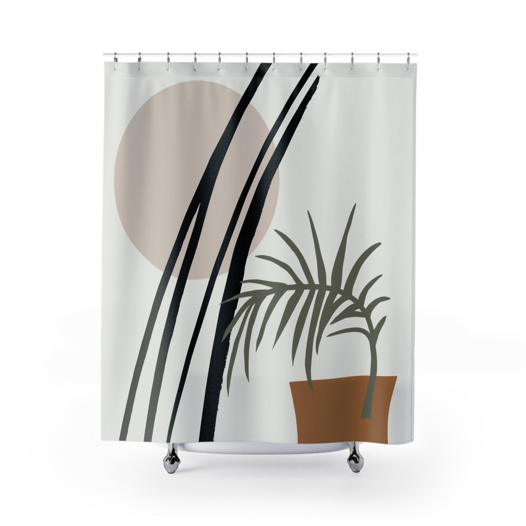 Abstract Shower Curtain | Boho Sun Plant Fabric Curtain