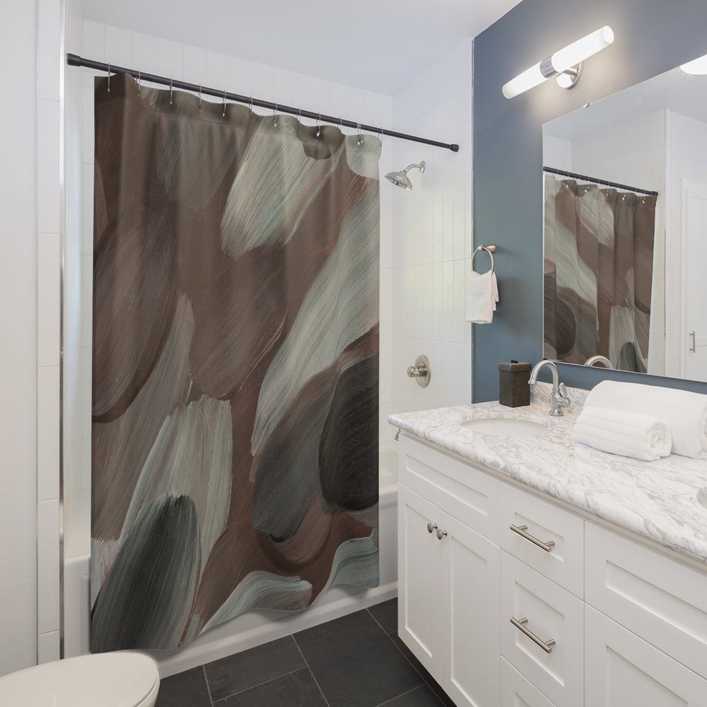 Abstract Shower Curtain | Earthy Brown Beige, Grey Watercolor