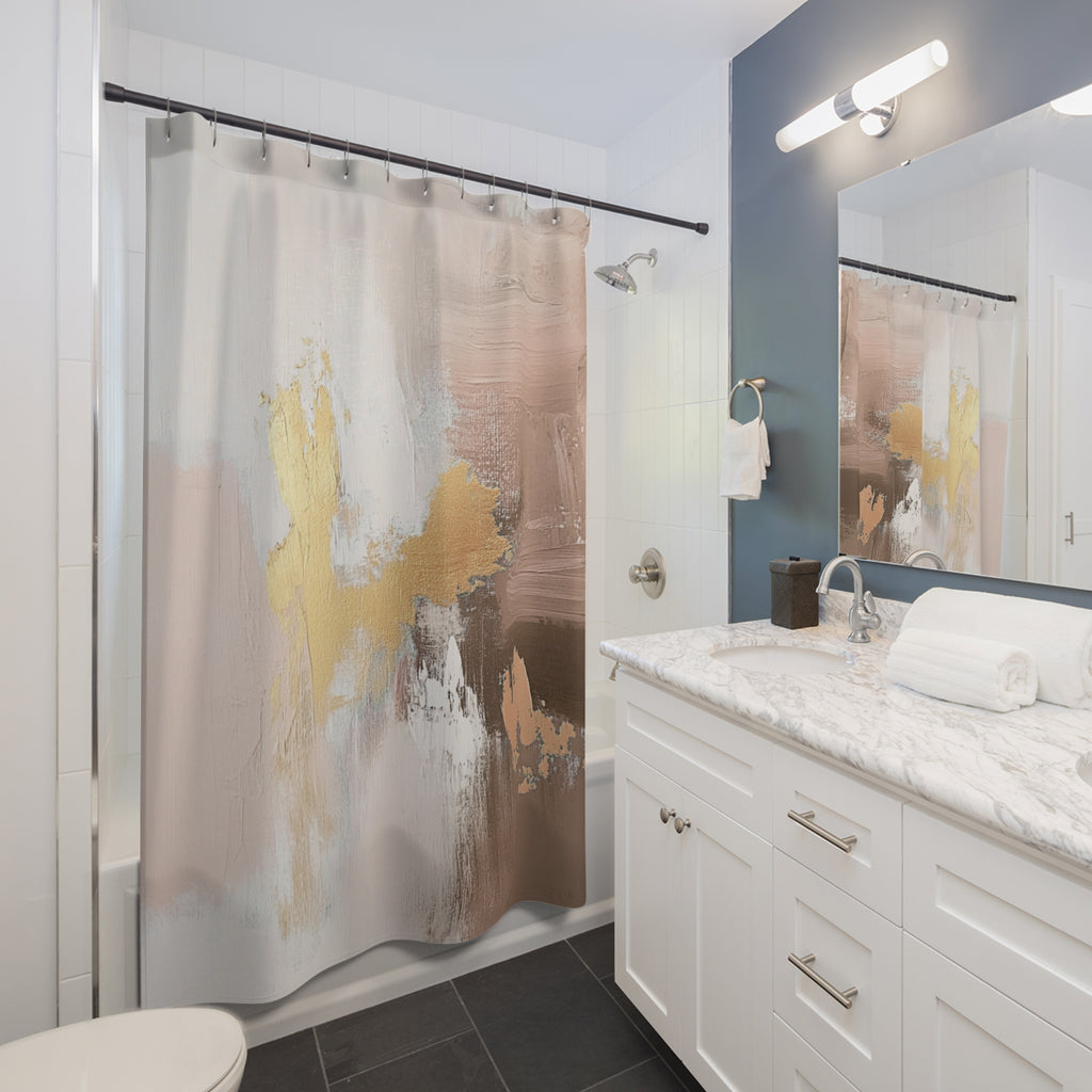Abstract Shower Curtain | Earthy Neutral Brown Beige, Muted Gold Ombre