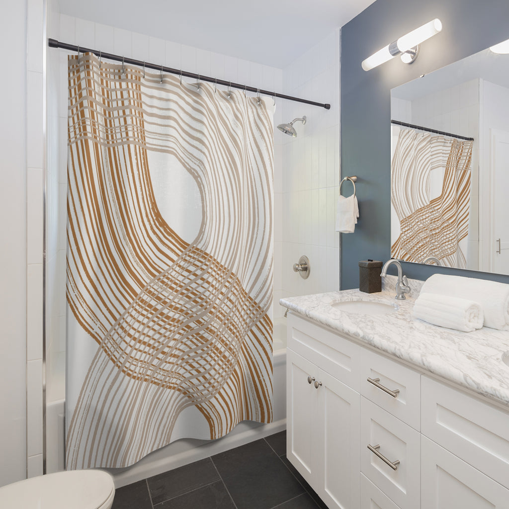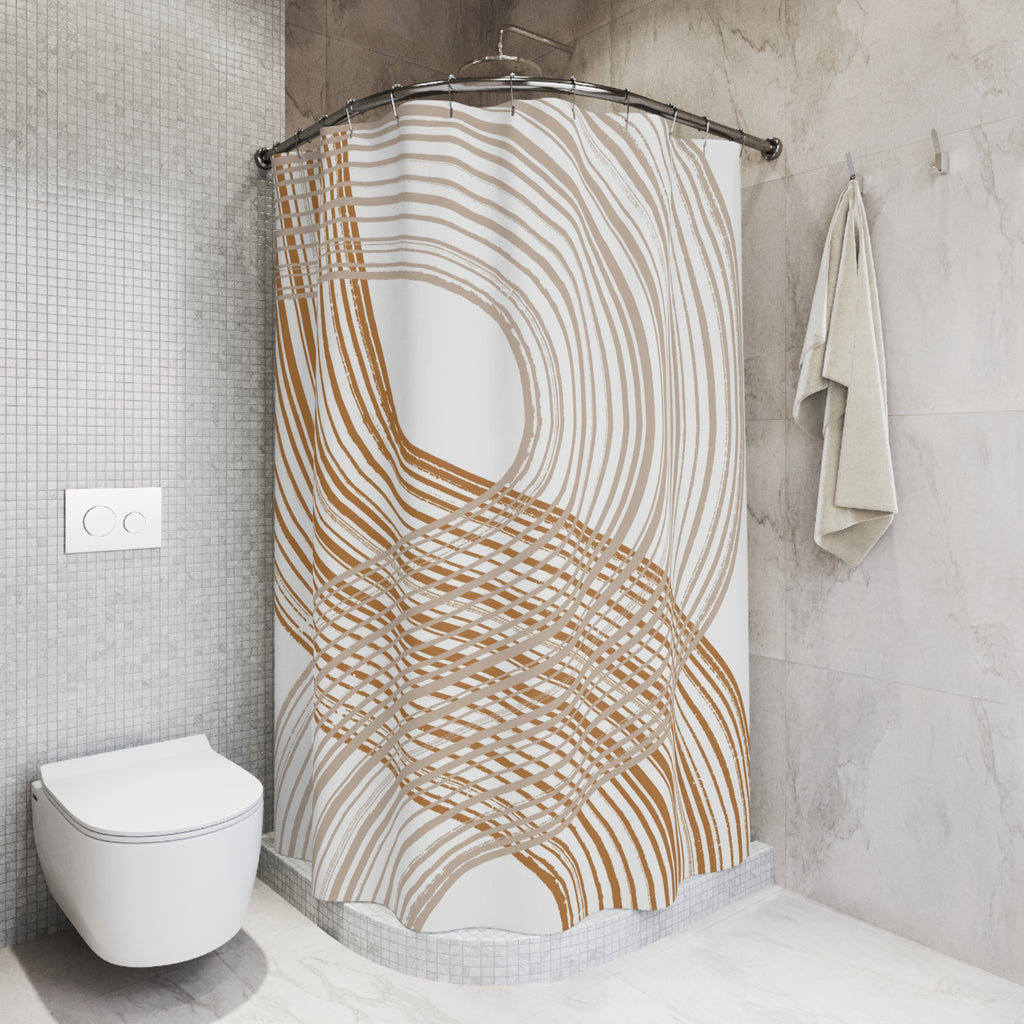 Abstract Shower Curtain | Earthy Neutral Fabric Curtain