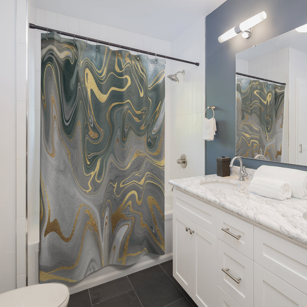 Abstract Shower Curtain | Grey Marble Print Bathroom Decor