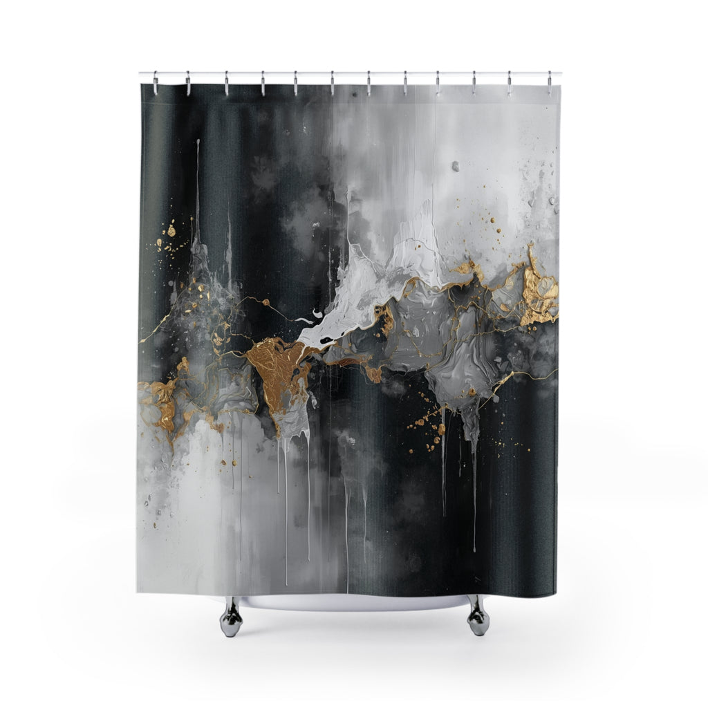Abstract Shower Curtain | Moody Black Grey, Muted Gold Watercolor