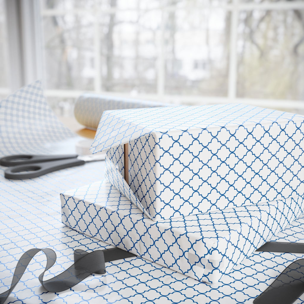 Art Deco Gift Wrapping Paper | Blue White Minimalist Wrap for the Holidays, Birthdays