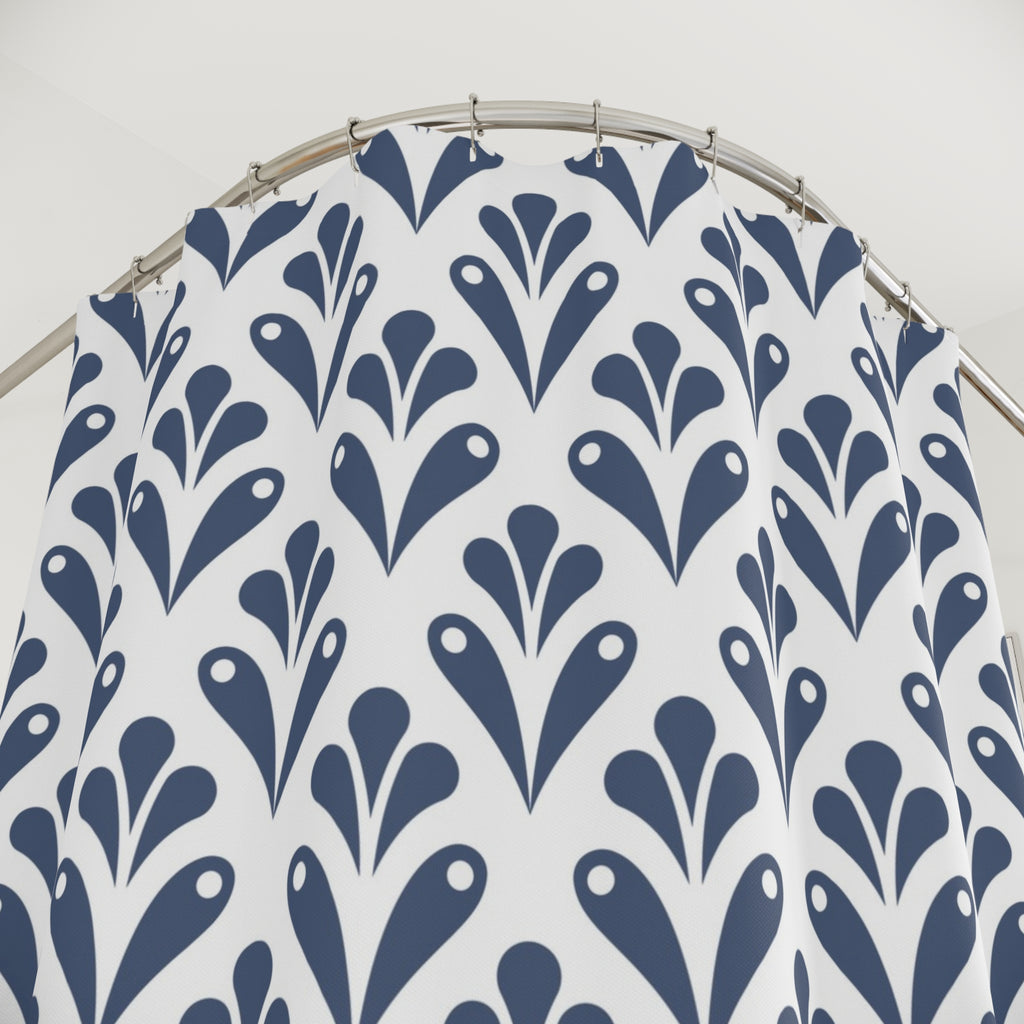 Art Deco Shower Curtain | Blue White Floral Bathroom Decor