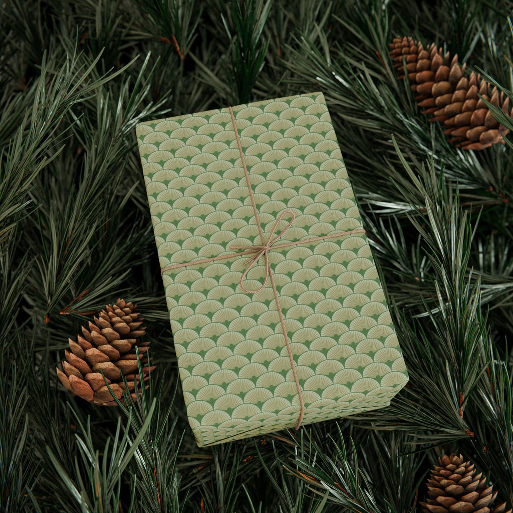 Art Deco Wrapping Papers, Green White for the Holidays, Birthdays