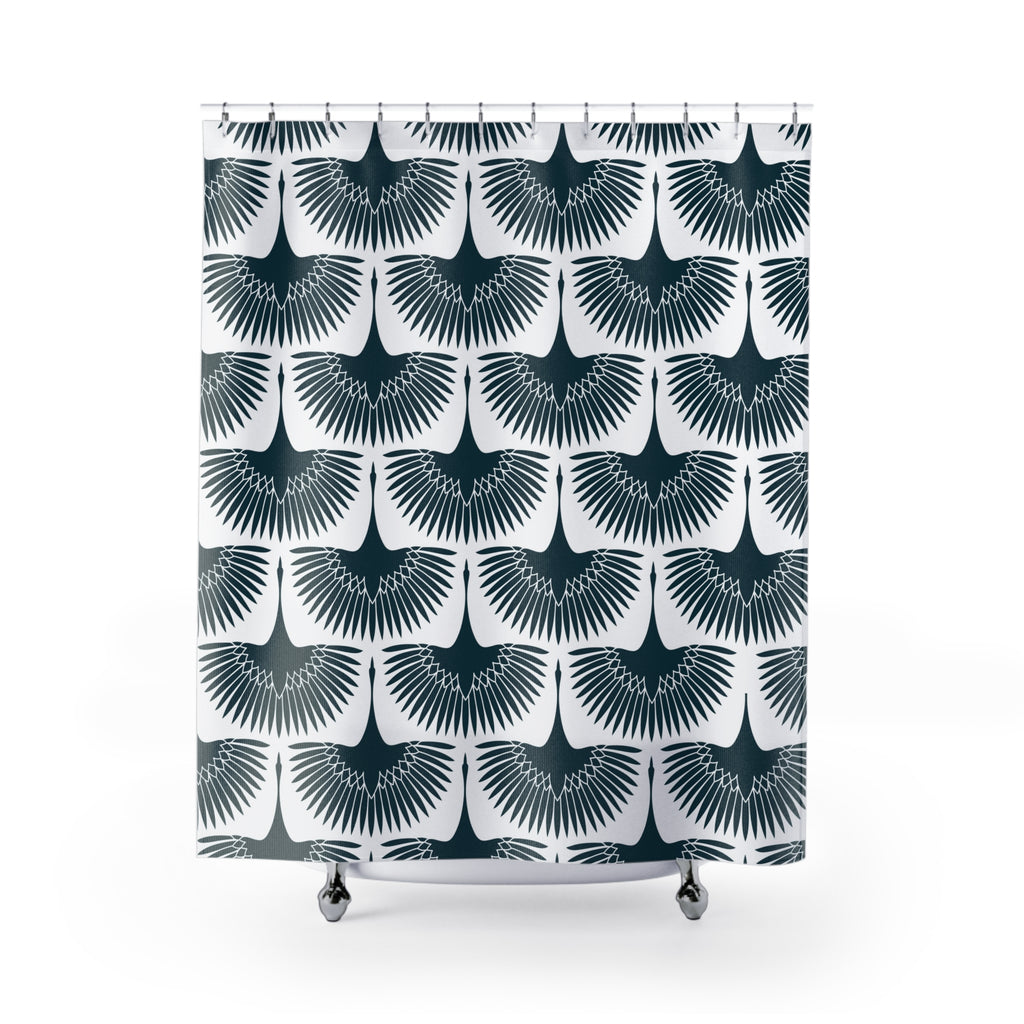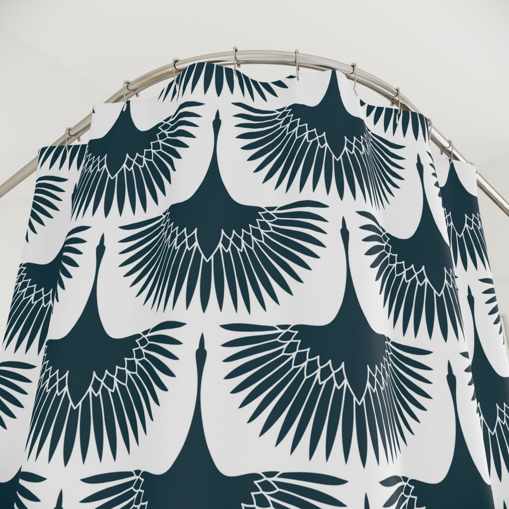 Art Nouveau Shower Curtain | Japanese Crane, Navy Blue White Cranes