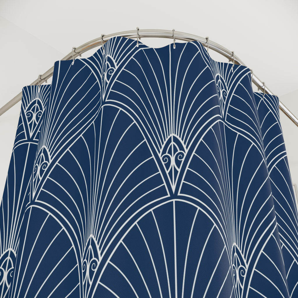 Blue White Shower Curtain | Art Noveau Fabric Curtain