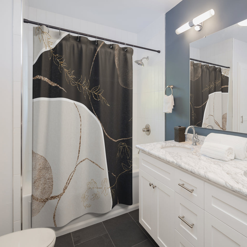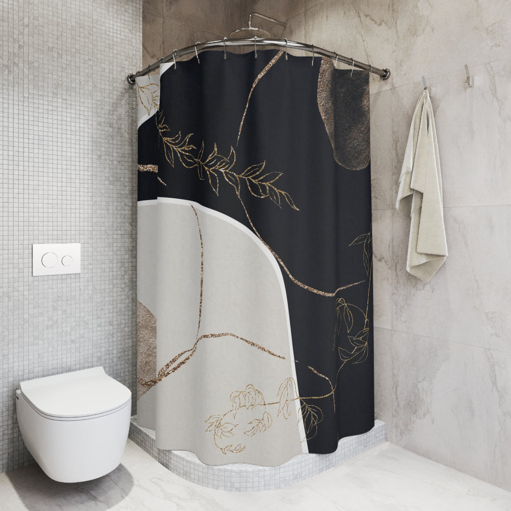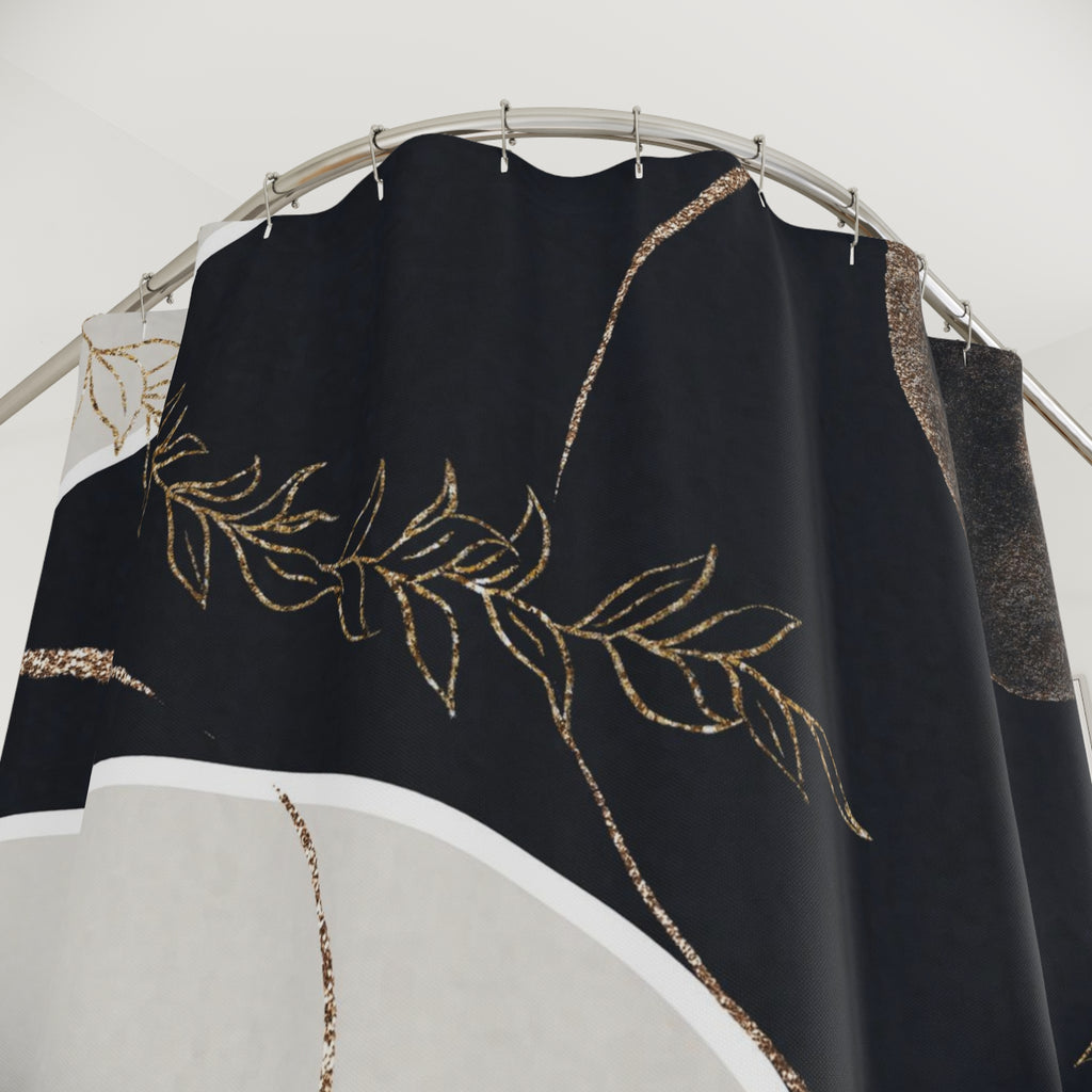 Boho Abstract Art Shower Curtain | Muted Gold Beige Black Line Art