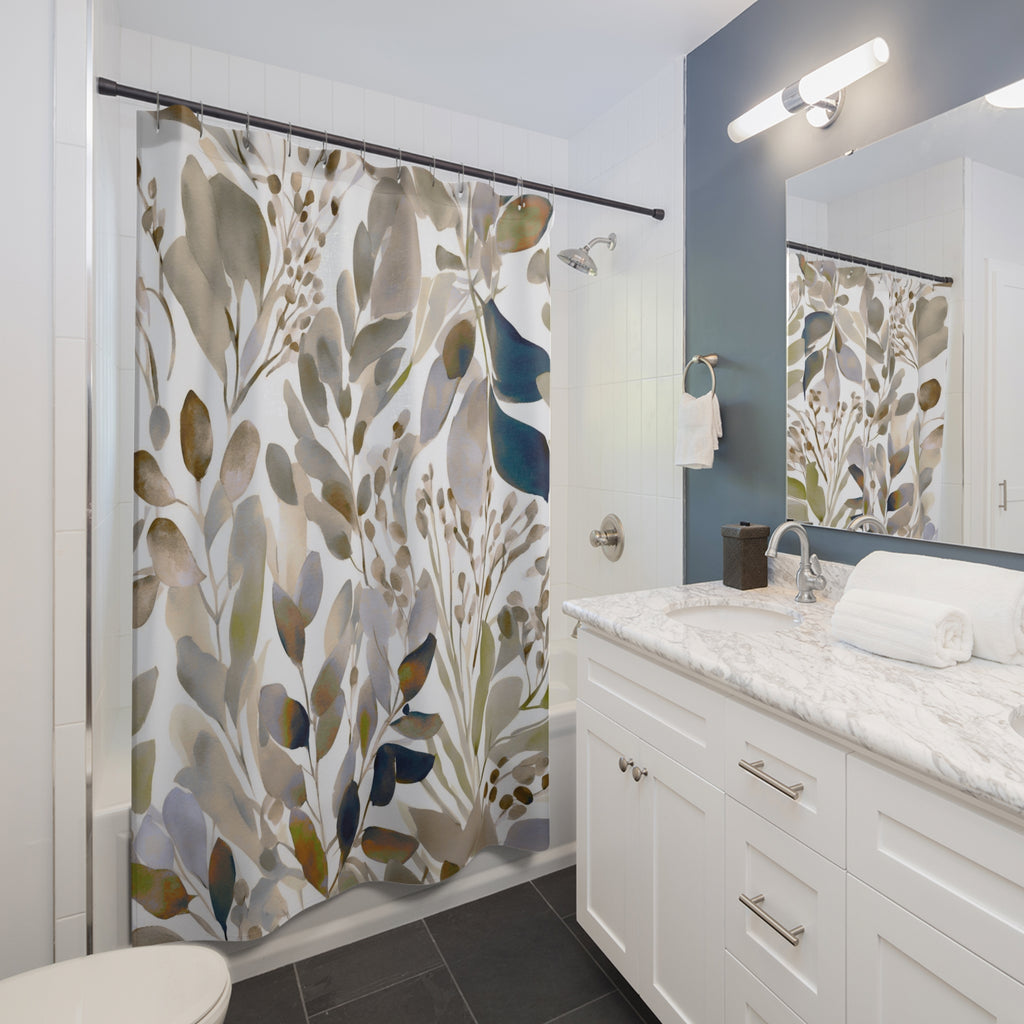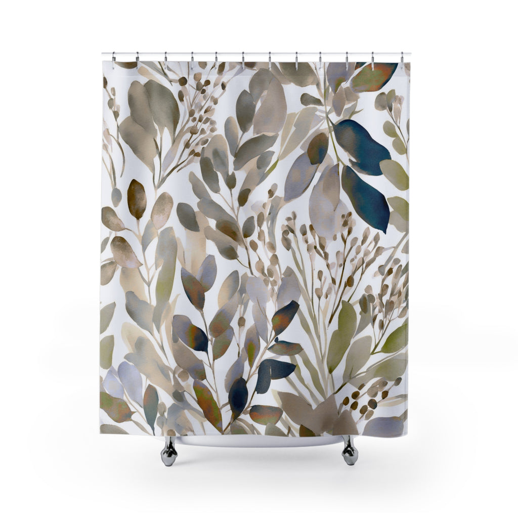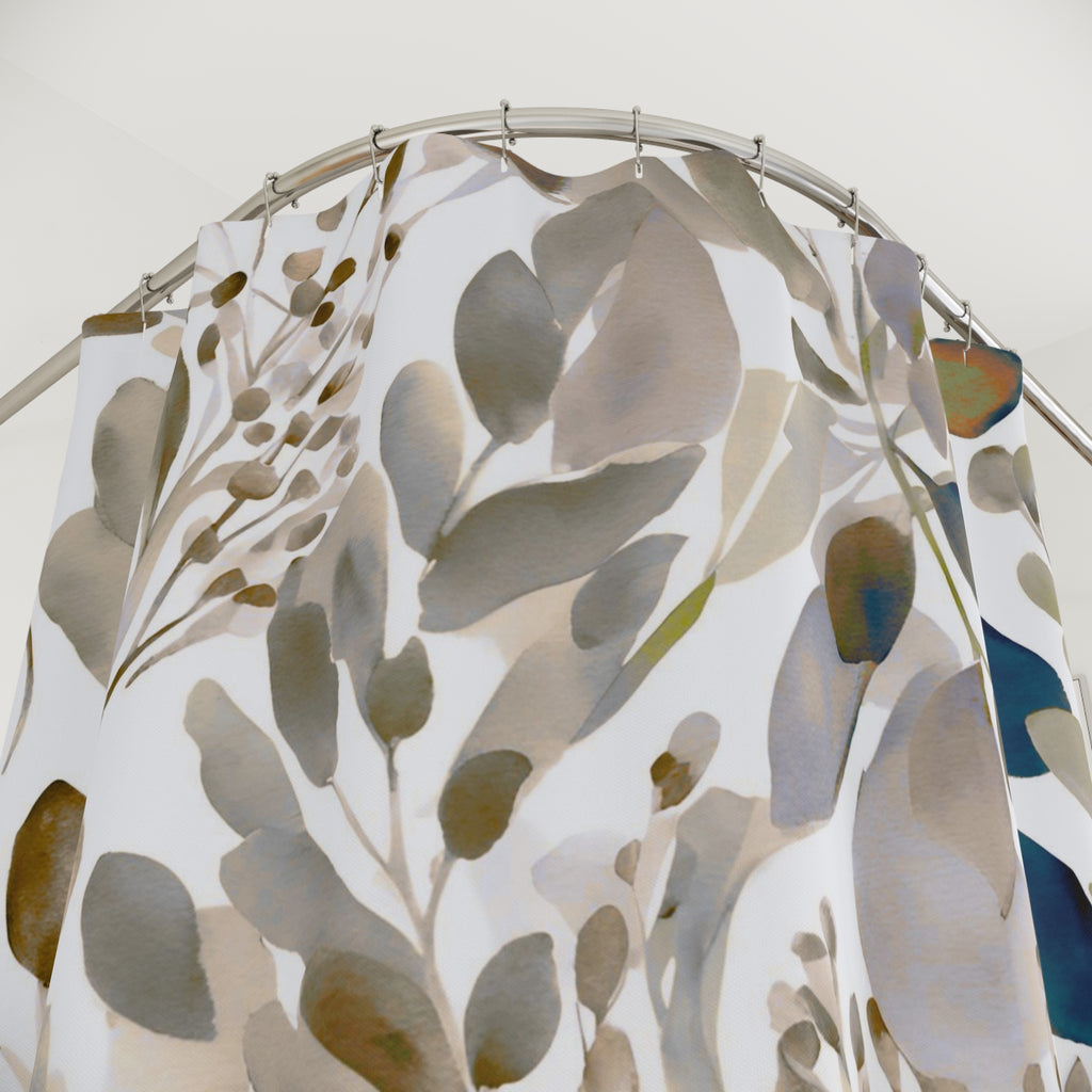 Boho Abstract Leaves Shower Curtain | Earthy Neutral Watercolor
