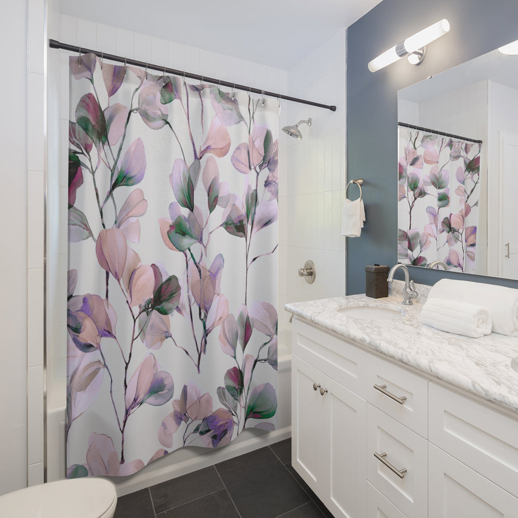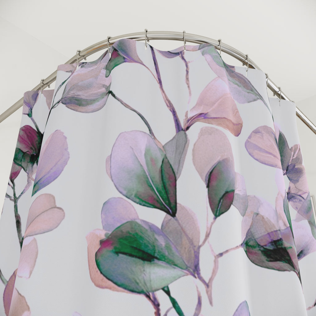Boho Abstract Leaves Shower Curtain | Pink Green Purple Watercolor