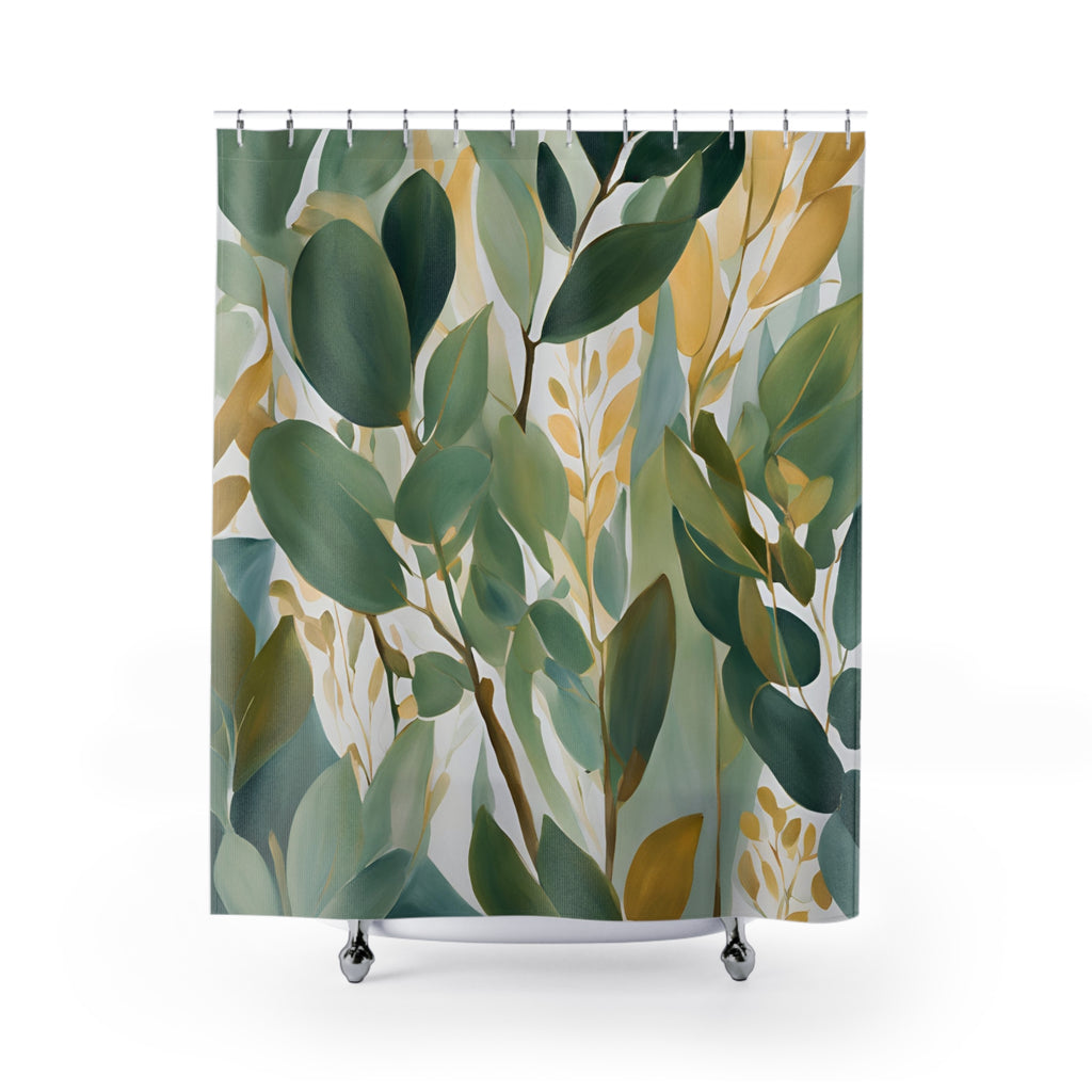 Boho Abstract Leaves Shower Curtain | Sage Teal Green, Beige