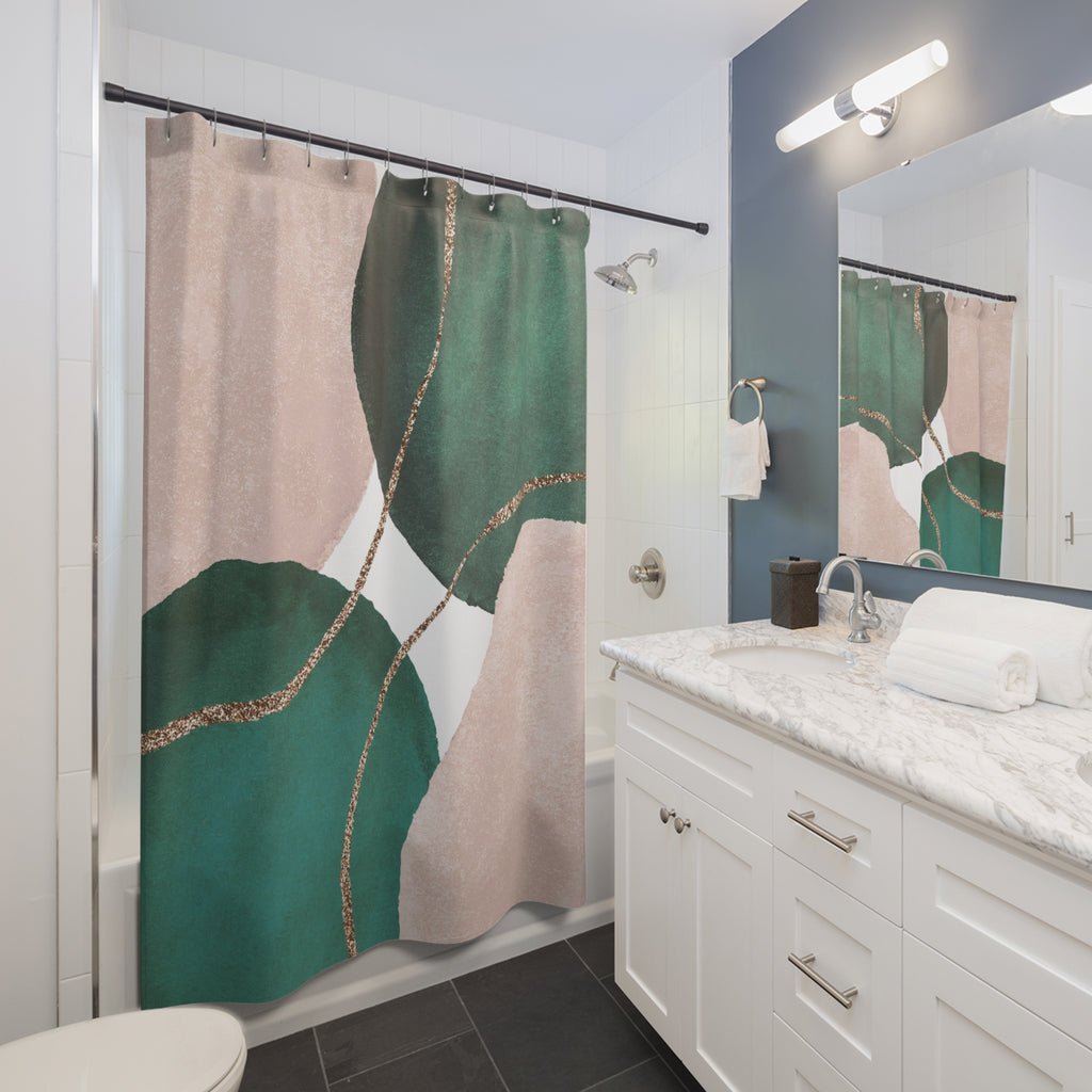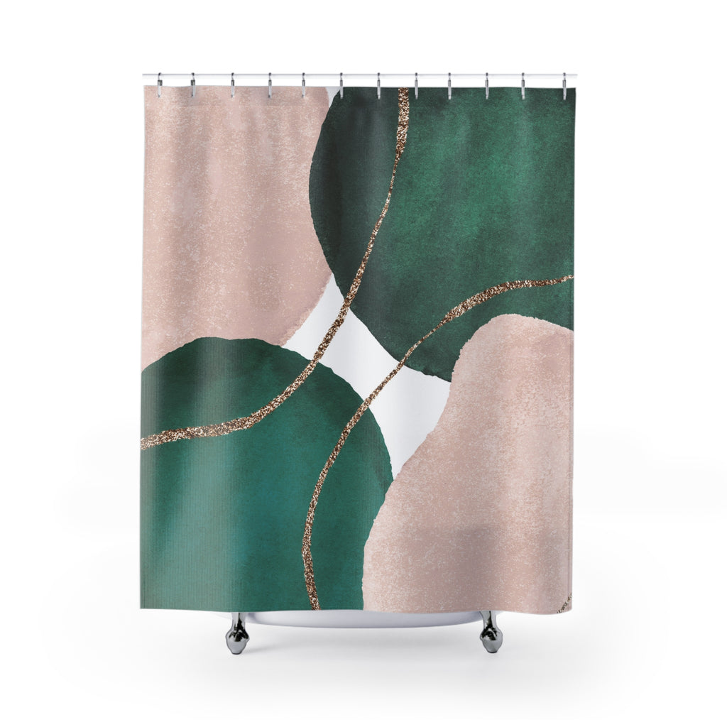 Boho Abstract Shower Curtain | Green Blush Pink Watercolor