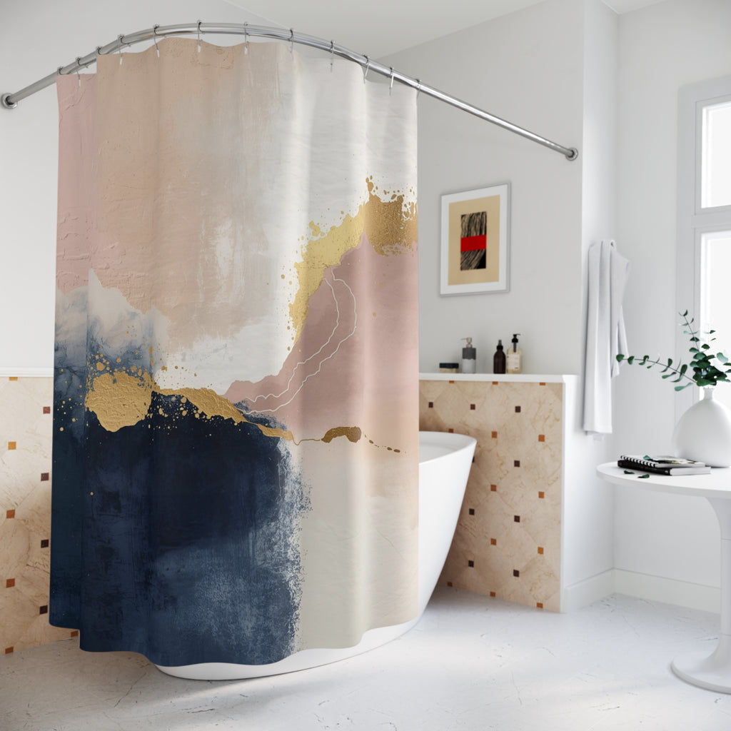 Boho Abstract Shower Curtain | Navy Blue, Blush White Watercolor