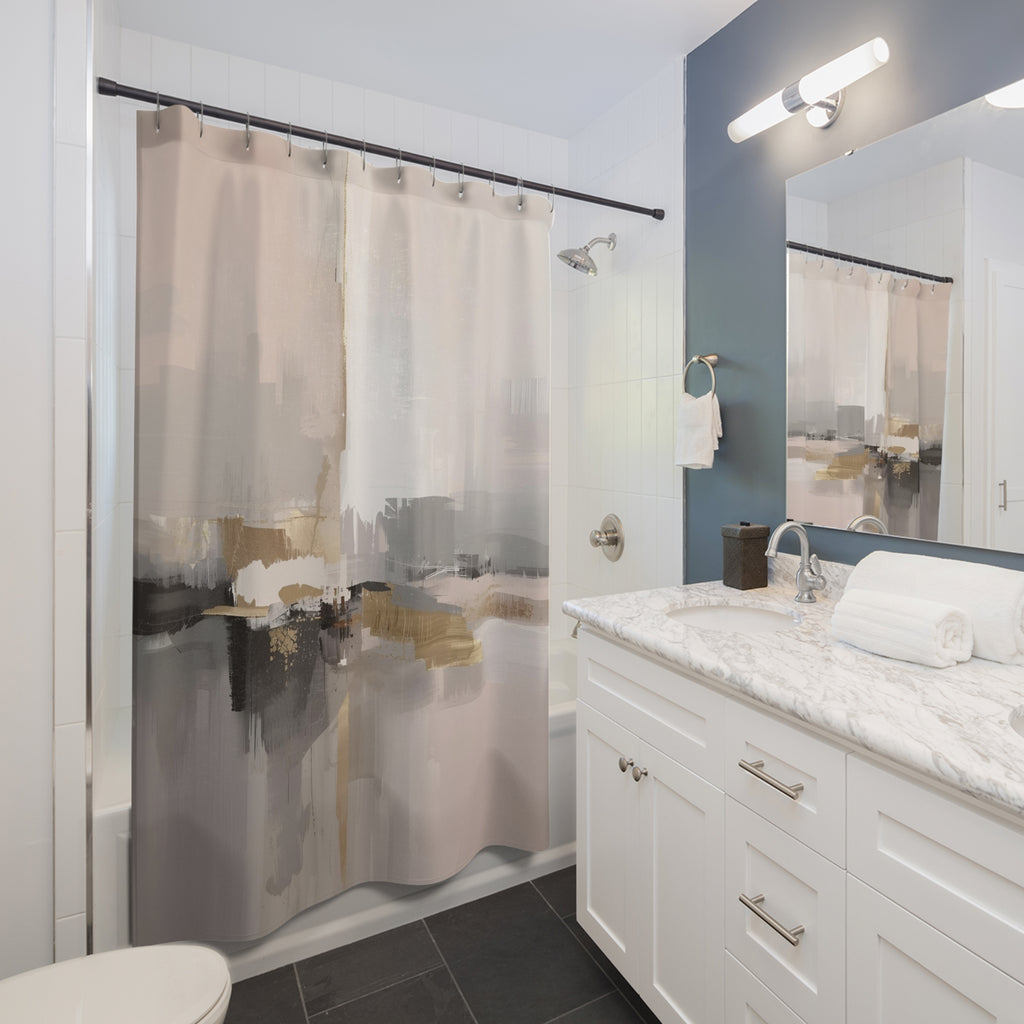 Boho Abstract Shower Curtain | Neutral Grey Blush Watercolor