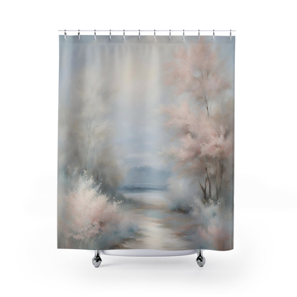Boho Abstract Shower Curtain | Pastel Blue, Blush Pink Nature