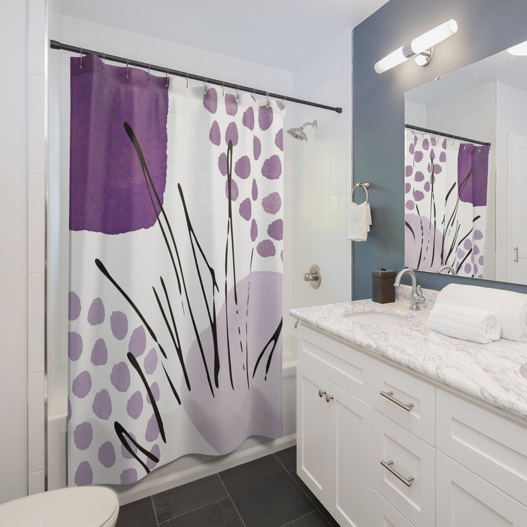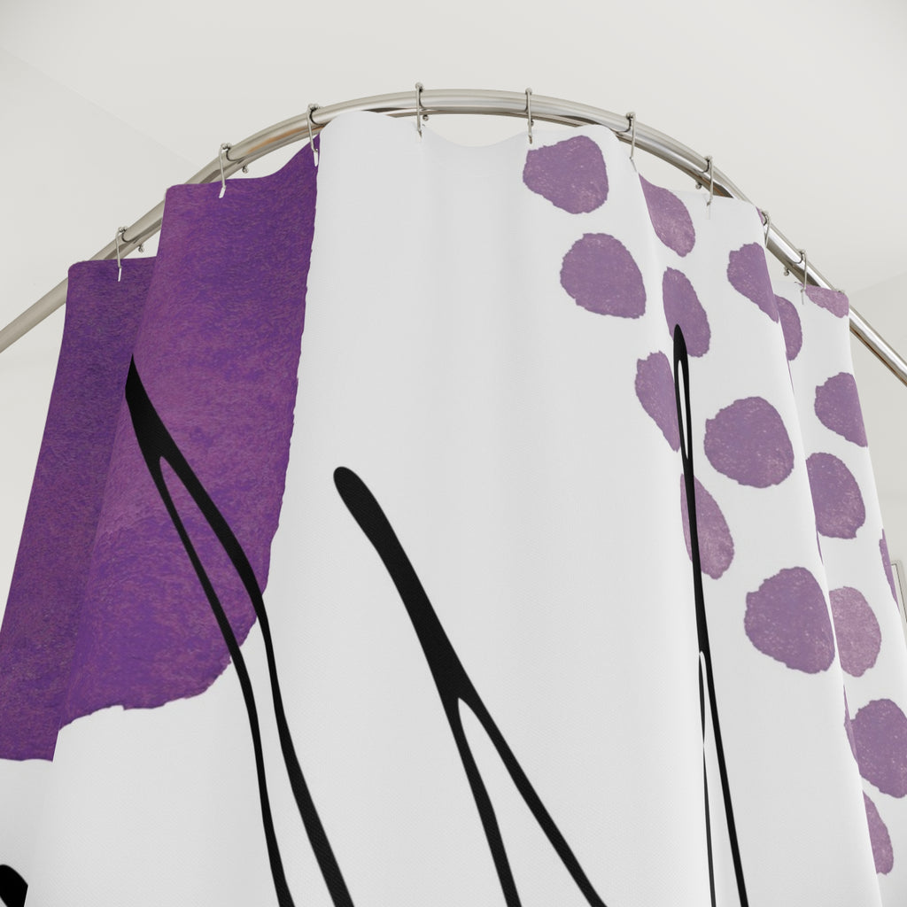 Boho Shower Curtain | Abstract Art White Lavender Purple Black Minimalist