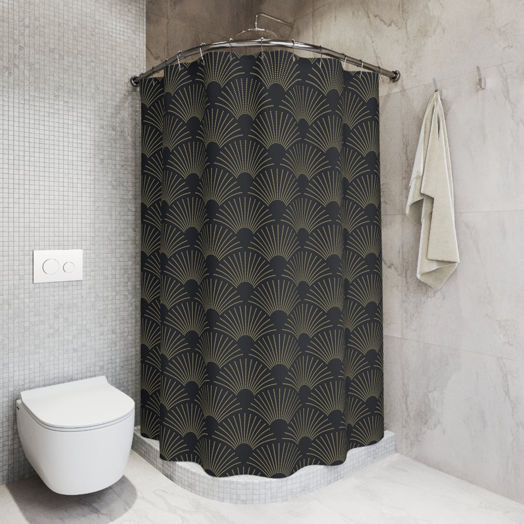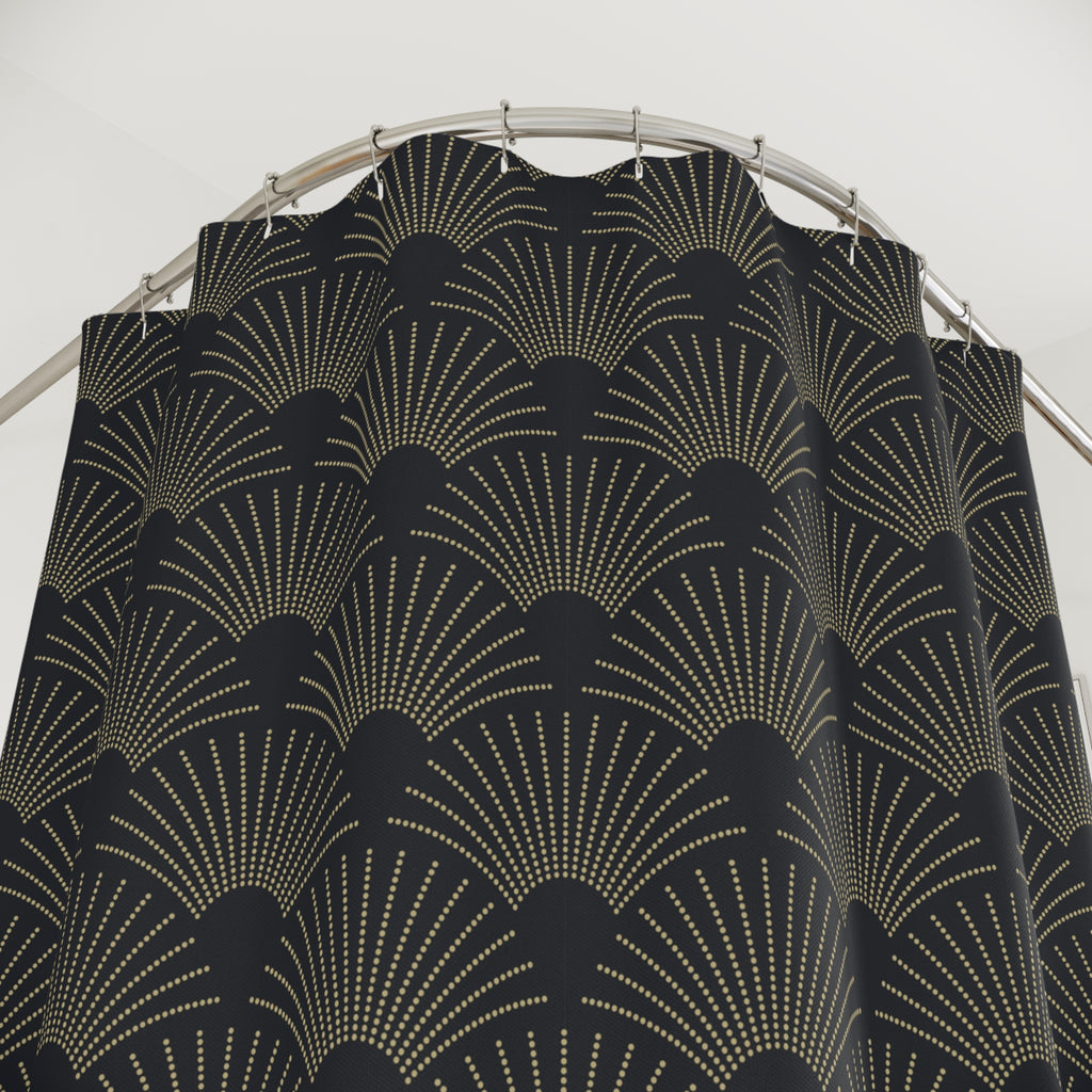 Boho Shower Curtain | Art Deco, Black Beige Crane Fan