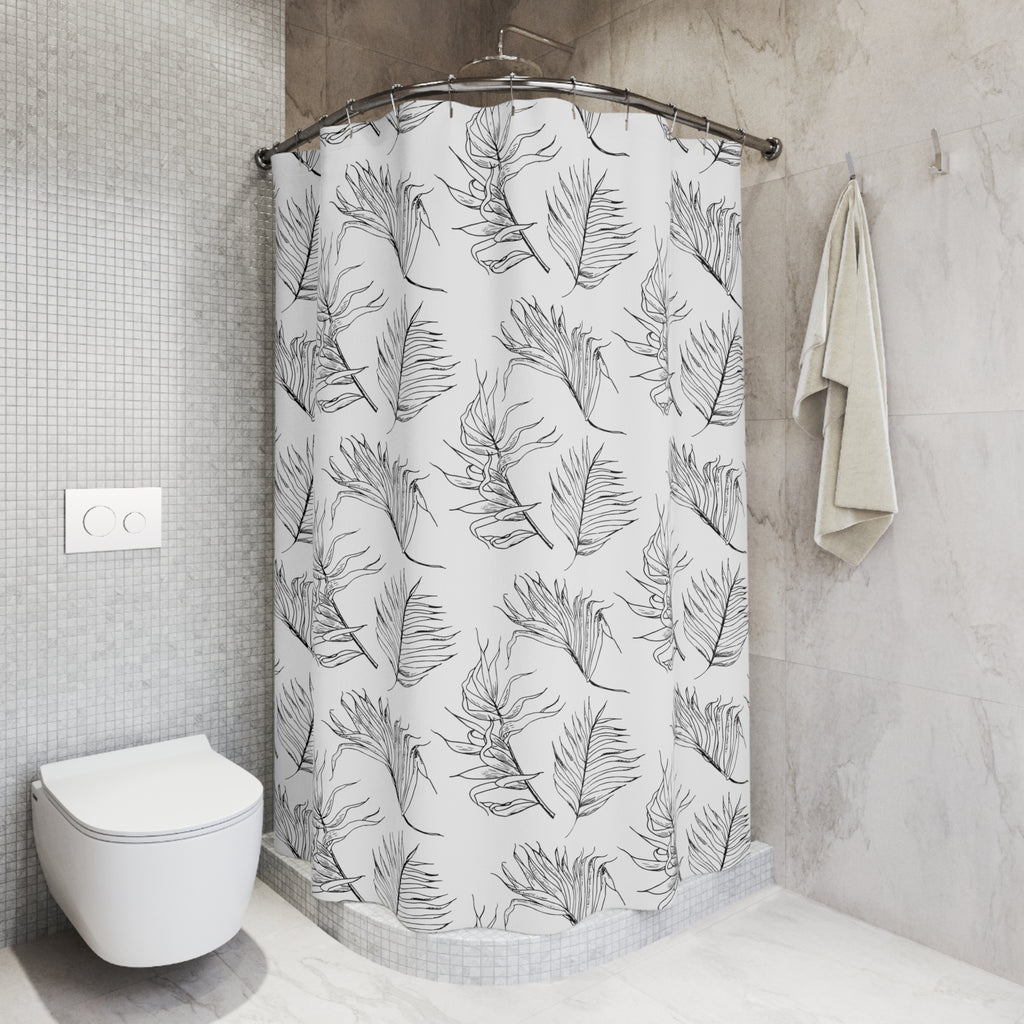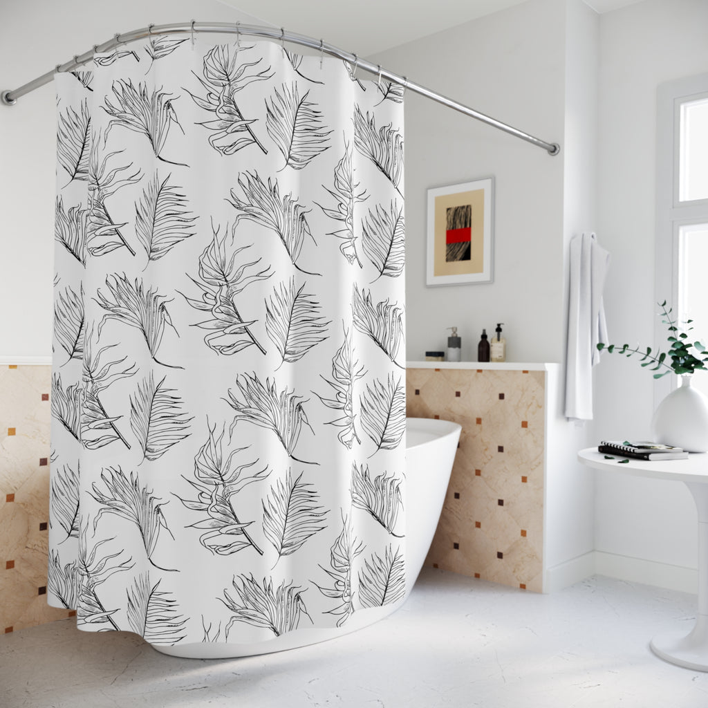Boho Shower Curtain | Black White Leaves Bathroom Decor
