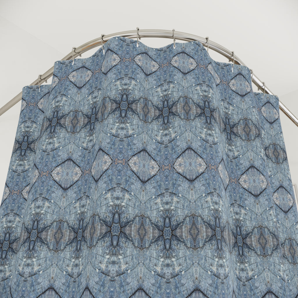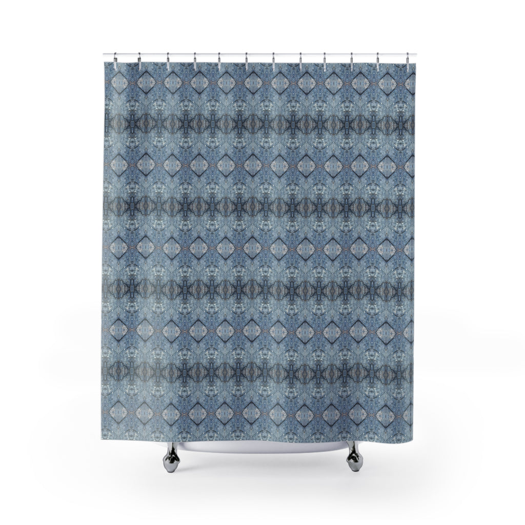 Boho Shower Curtain | Blue Moroccan Abstract Fabric Curtain