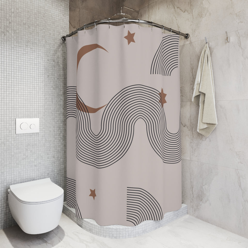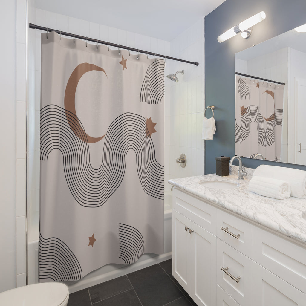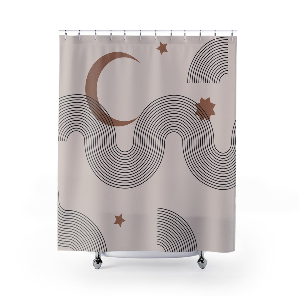 Boho Shower Curtain | Mid Century Bohemian Fabric Curtain