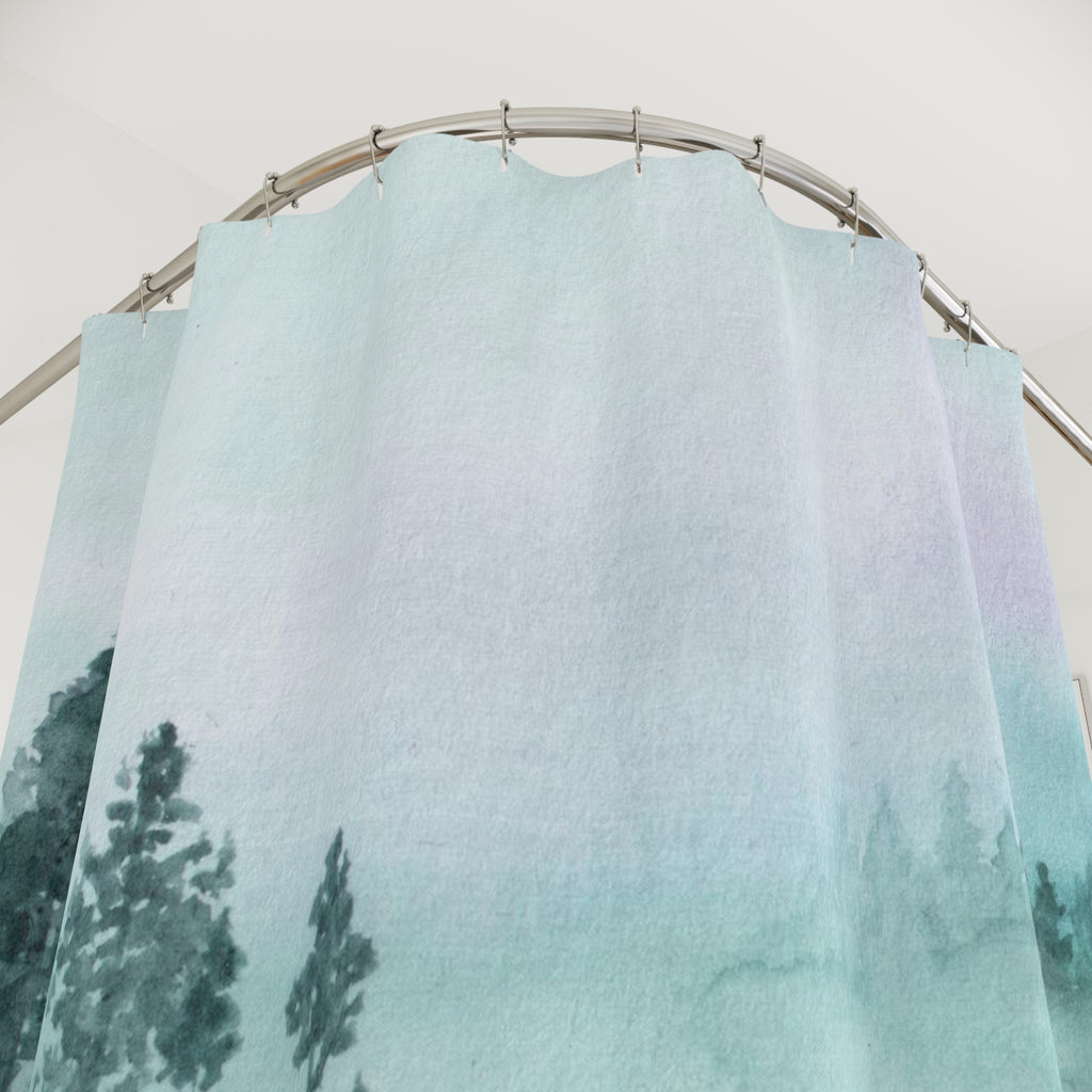 Boho Shower Curtain | Sage Green Forest Trees Nature