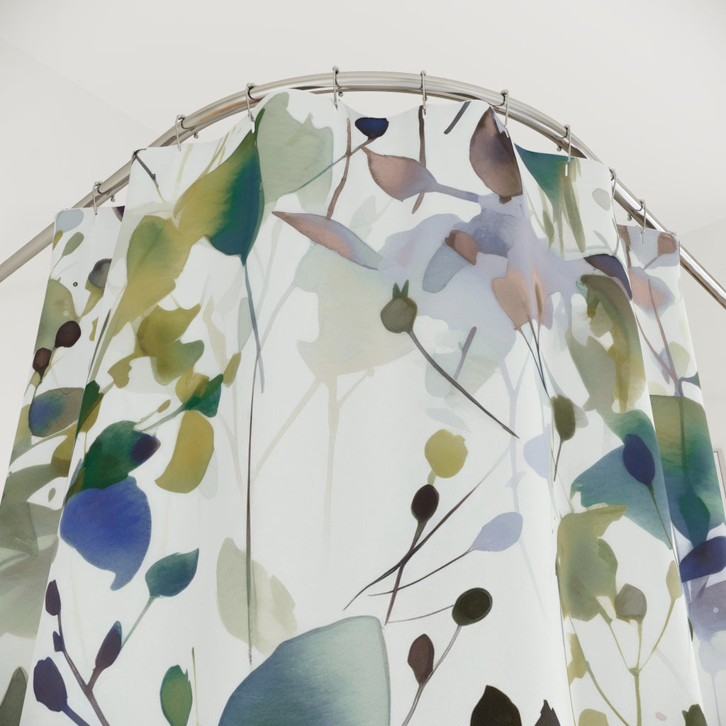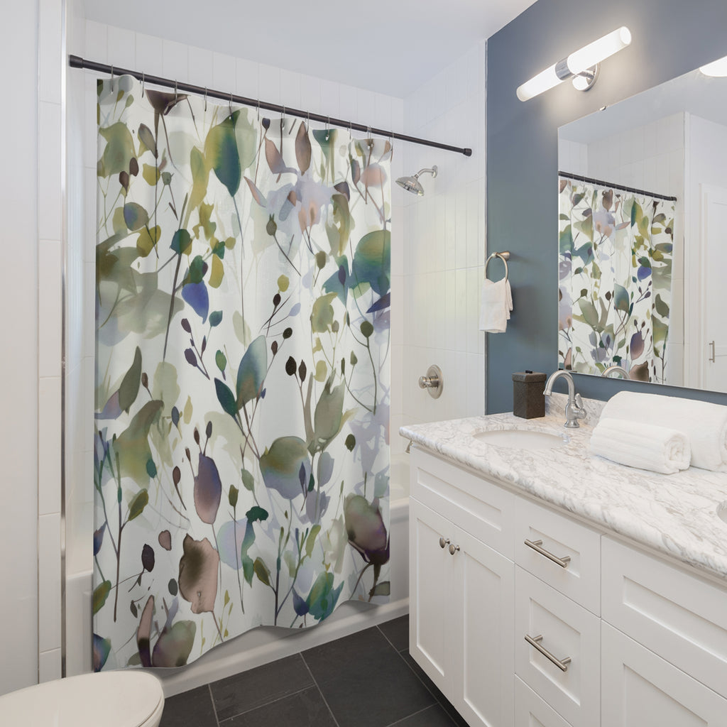 Boho Shower Curtain | Sage Green White, Colorful Floral Watercolor