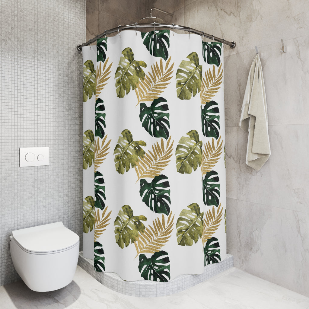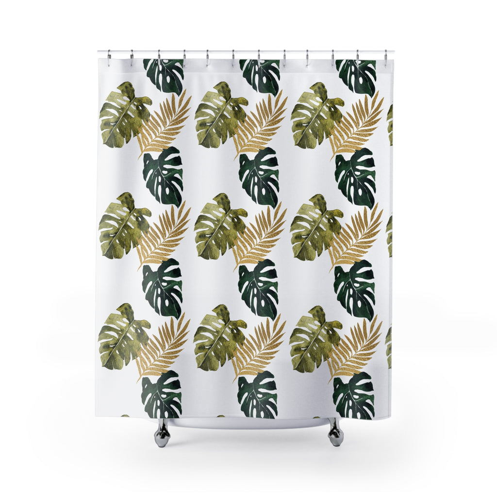 Boho Shower Curtain | Sage Green White Monster Leaves Fabric Curtain
