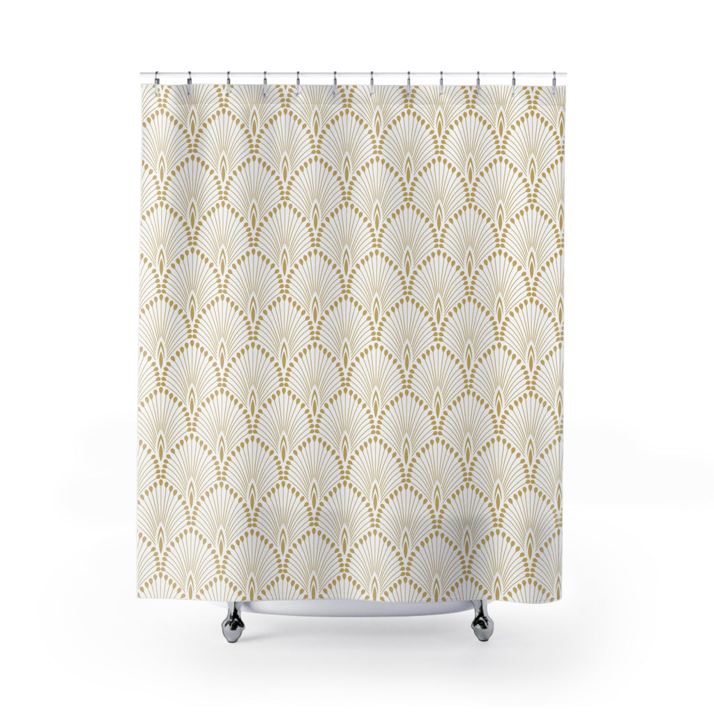 Boho Shower Curtain | Vintage Tan Beige White Art Deco Crane