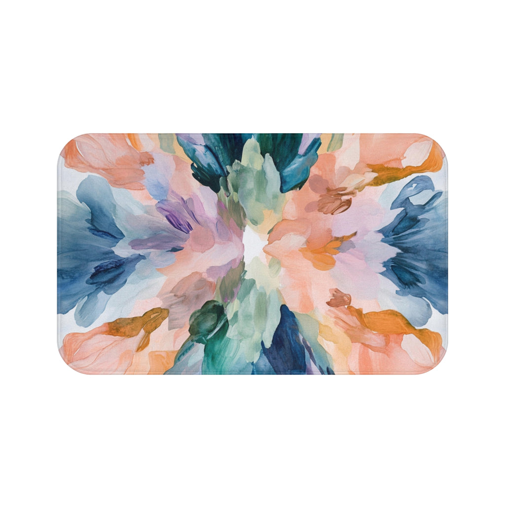 Colorful Bath Mat | Abstract Art, Peach Blush Green Blue White Kitchen Mat